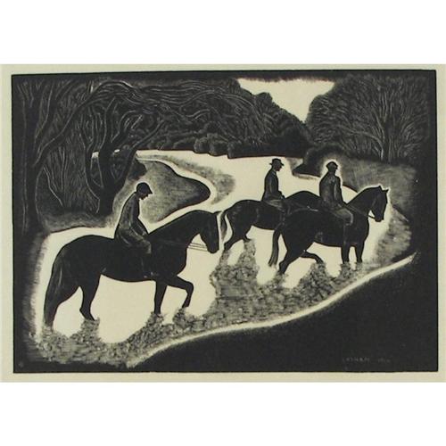 Barbara Latham (1896-1989) Woodblock, "Fording the Stream", image size 6" x 8 1/2", signed in plate