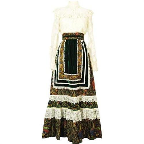 <B>Barbara Mandrell Custom-Made Outfit.</B></I> A custom-made lace blouse and floor-lenght patterned skirt, created for Barbara Mandrell by Nashville designer Patsy Sledd. Both the blouse and skirt are in Excellent condition and are accompanied by a letter of provenance.<BR><BR><b>Shipping:</b> Clothing, Costumes & Jerseys (<a target="_blank" href="http://www.heritageauctions.com/common/shipping.php">view shipping information</a>)