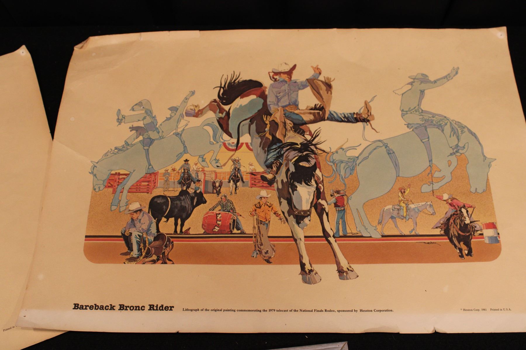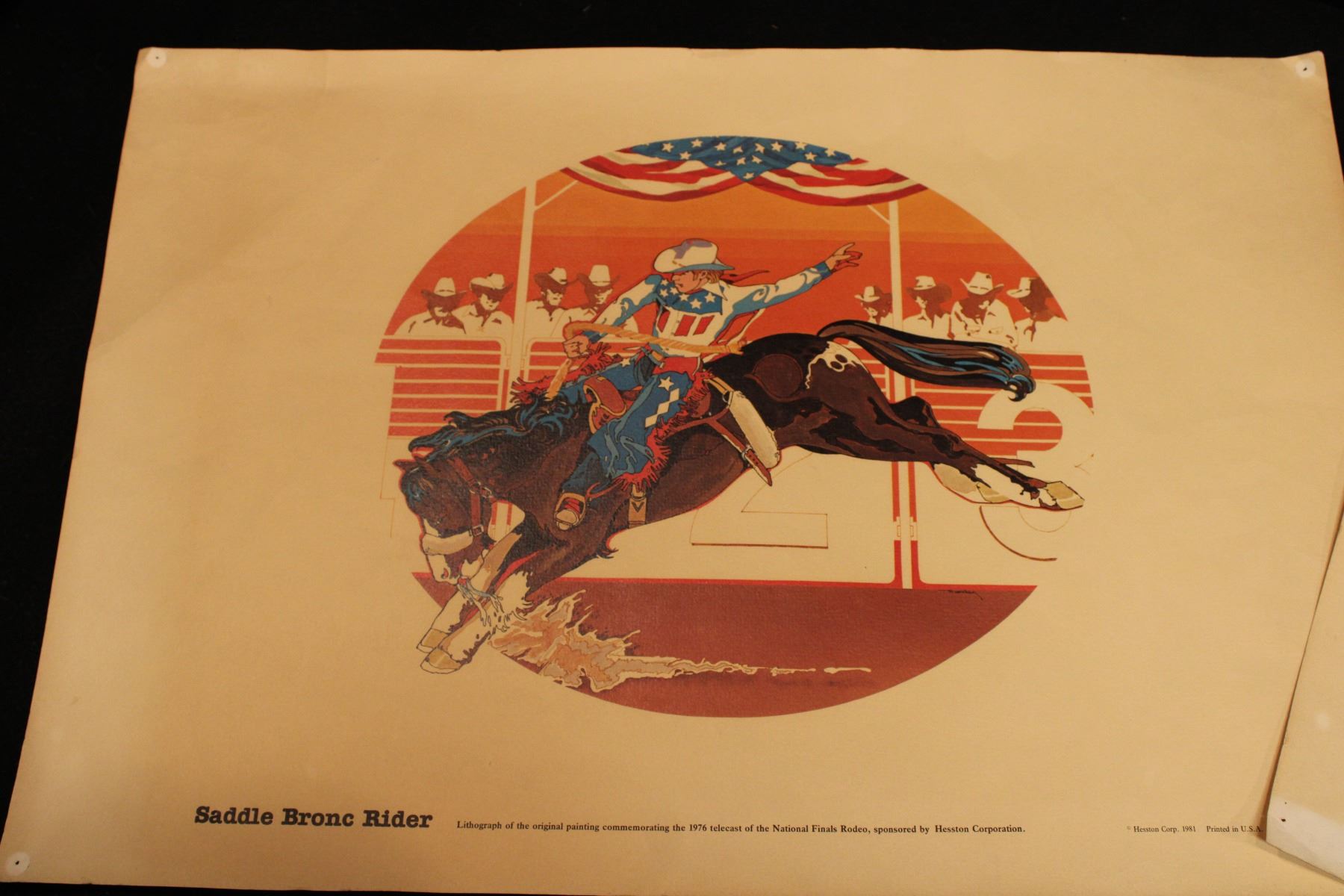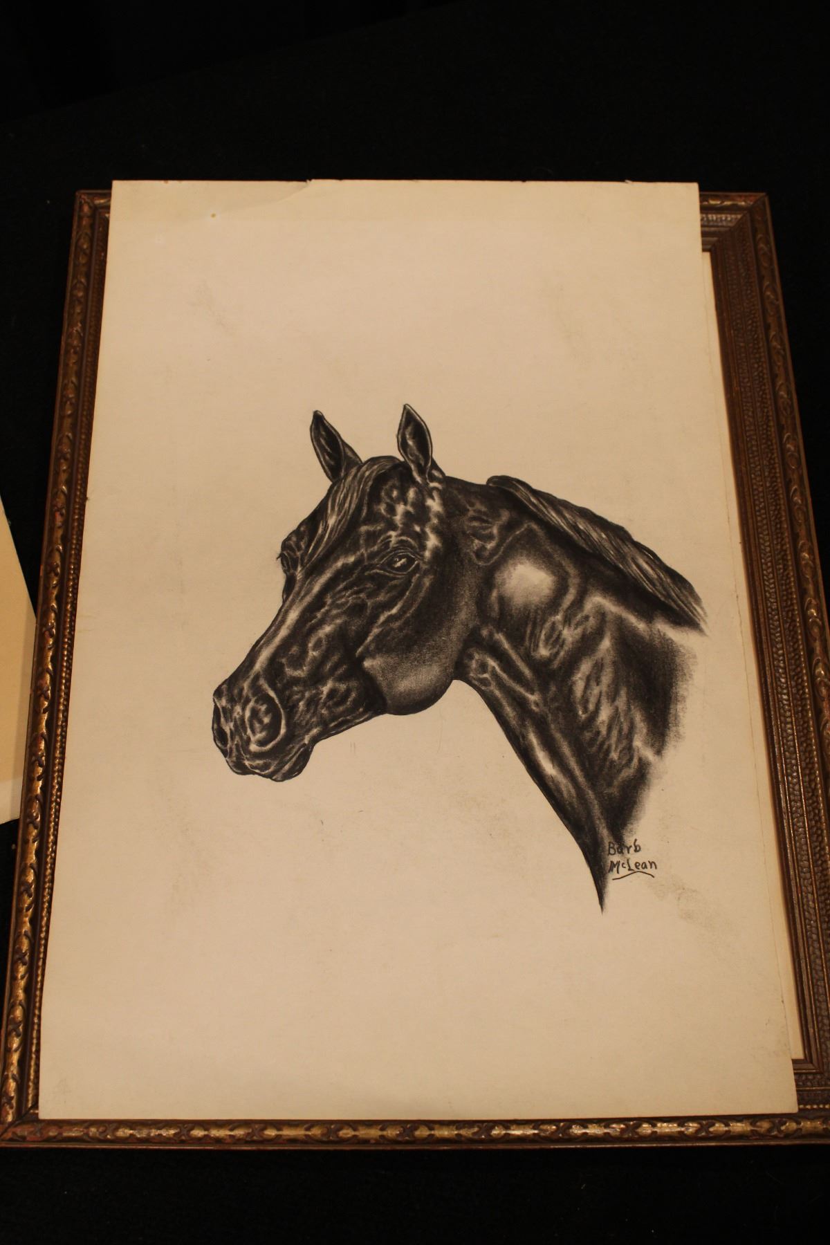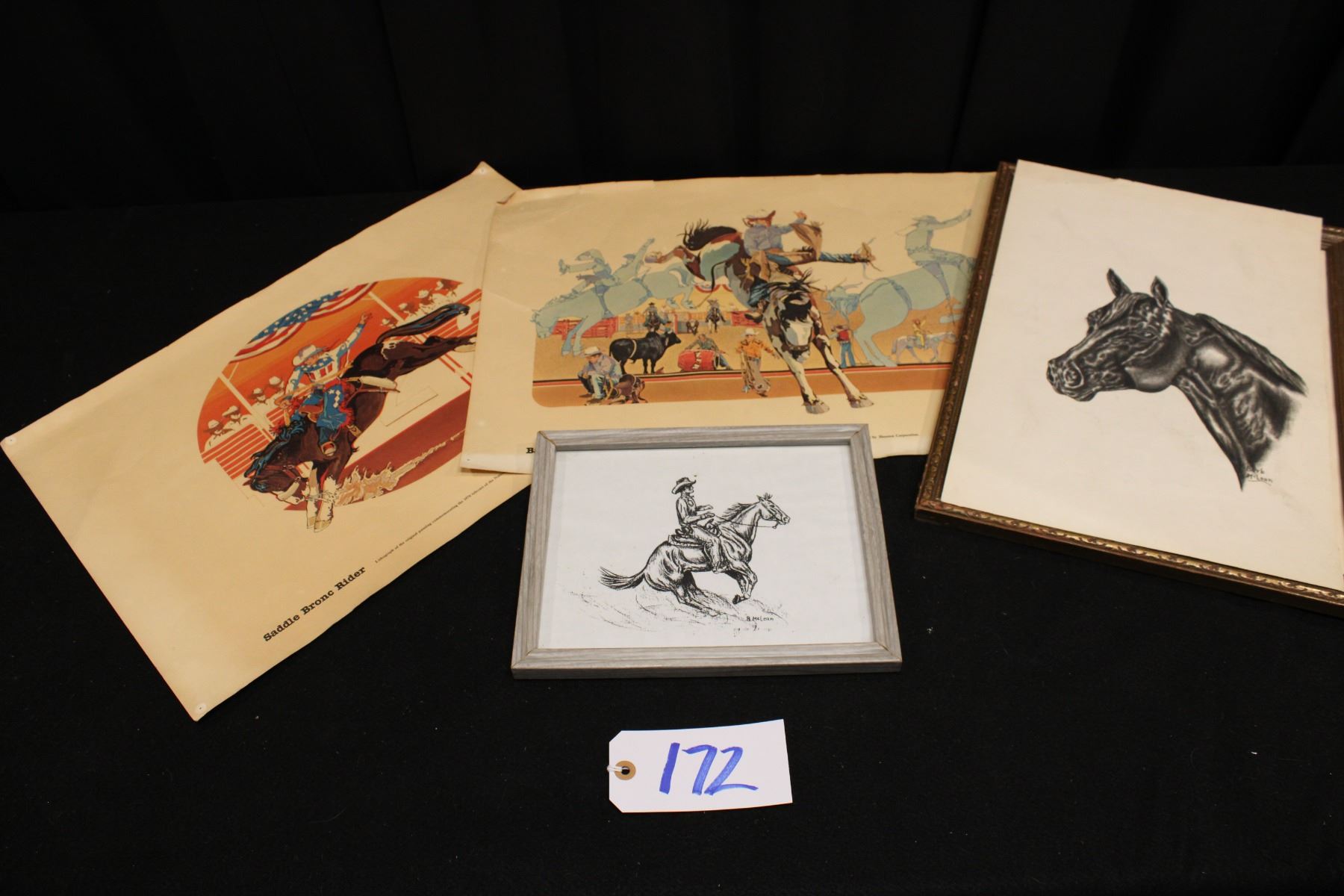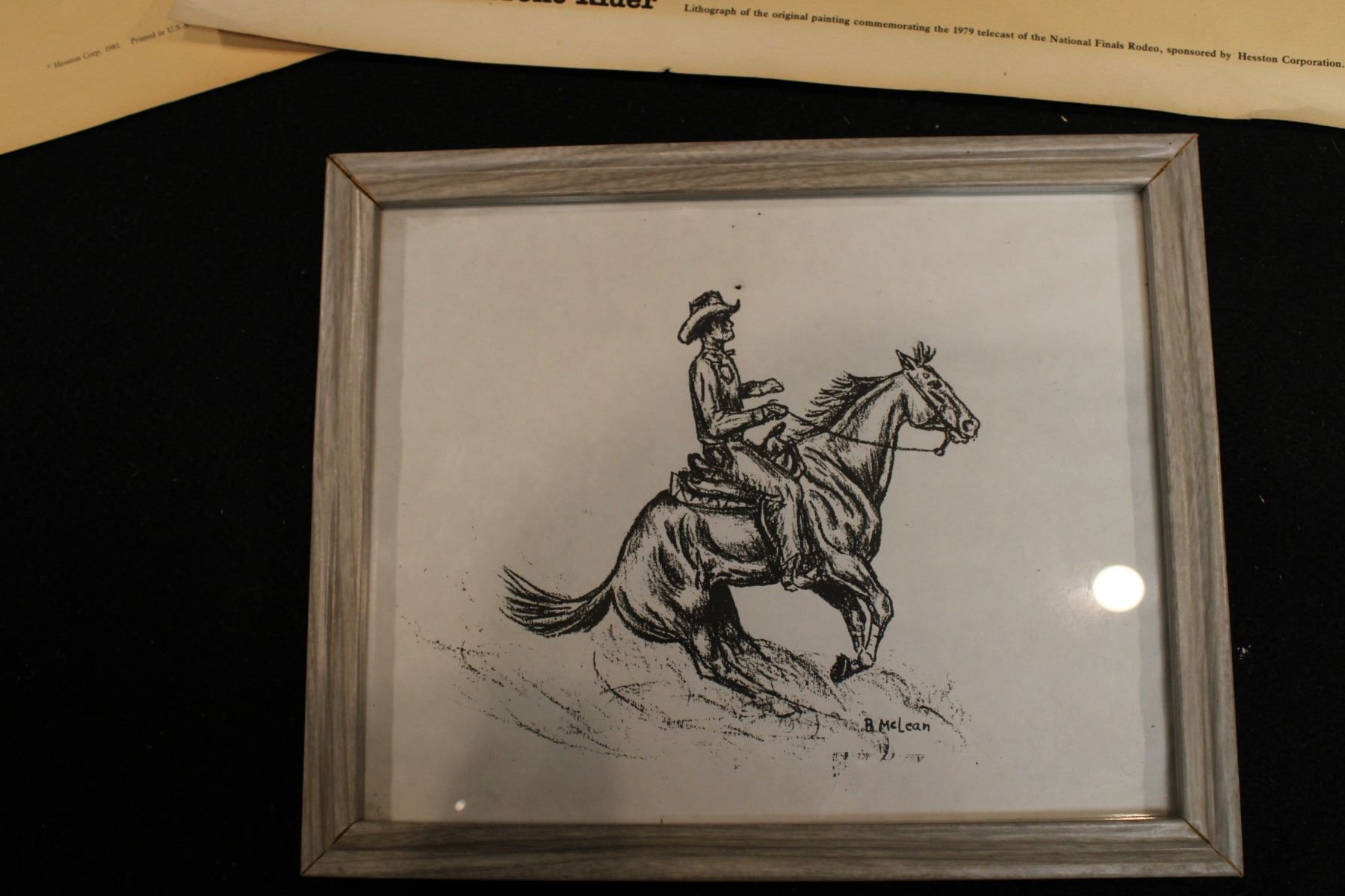 Lot of 2 original drawings and on print by Barbara McLean and 2 Heston NFR lithographs. 16.5" x 15.5" x 11".