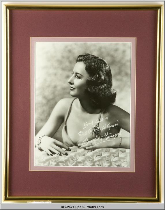Frame Photograph of Barbara Stanwyck from the Max Factor Collection / "Good Luck to Max Factor-Hollywood Barbara Stanwyck" {16 1/2" L x 1" W x 20 1/2" H} {4 Pounds}