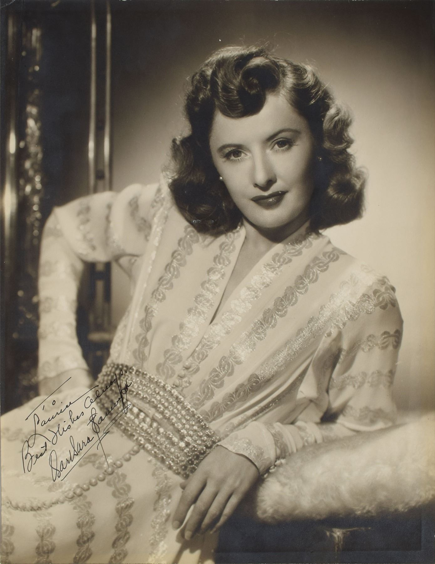 Beautiful vintage matte-finish 10.25 x 13.25 photo of Stanwyck in a confident half-length pose, signed and inscribed in fountain pen, "To Laurin, Best wishes always, Barbara Stanwyck.” In very good to fine condition, with trimmed edges, silvering to darker areas of the image, and light perimeter impressions from old tape residue on the reverse.