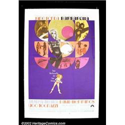 Barbarella (Paramount, 1968). One Sheet (27"X41") Style B.  Wielding Jane Fonda in go-go boots and plastic mini skirts, Barbarella has become a cult classic and a landmark film of the 1960s!  While the style A one sheet was a fairly typical science-fiction poster, the extremely rare style B offered here captured the films kitsch with its pop-art motif! Very Fine on Linen.Important notice: We expect to be auctioning lots at the rate of 200-250 per hour. Sometimes eBay Premier live bid software cannot keep up with that pace, so we strongly recommend that you place a realistic proxy bid now as insurance to avoid disappointment. Also please note that all Heritage/CAA lots purchased through eBay Premier carry a 20% Buyer's Premium.