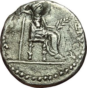 Barbaric. Tiberius (14-37). Danubian limes. Imitation of denarius. Obv.: TI CAES [ ] AVG F AVGVSTVS. Laureate head right. Rev.: PONT[ ]. Livia seated right, holding sceptre and olive branch. Cfr. RIC 30 var. AG. g. 2.02 mm. 16.50 RR. Good VF+/VF. Very rare. A very interesting coin. Monete Barbariche. Limes danubiano. Tiberio (14-37). Imitazione di denario. D/ TI CAES [ ] AVG F AVGVSTVS. Testa laureata a destra. R/ PONT[ ]. Livia seduta a destra tiene scettro e ramo d'olivo. Cfr. RIC 30 var. AG. g. 2.02 mm. 16.50 RR. Bel BB+/BB. Molto raro e di grande interesse.