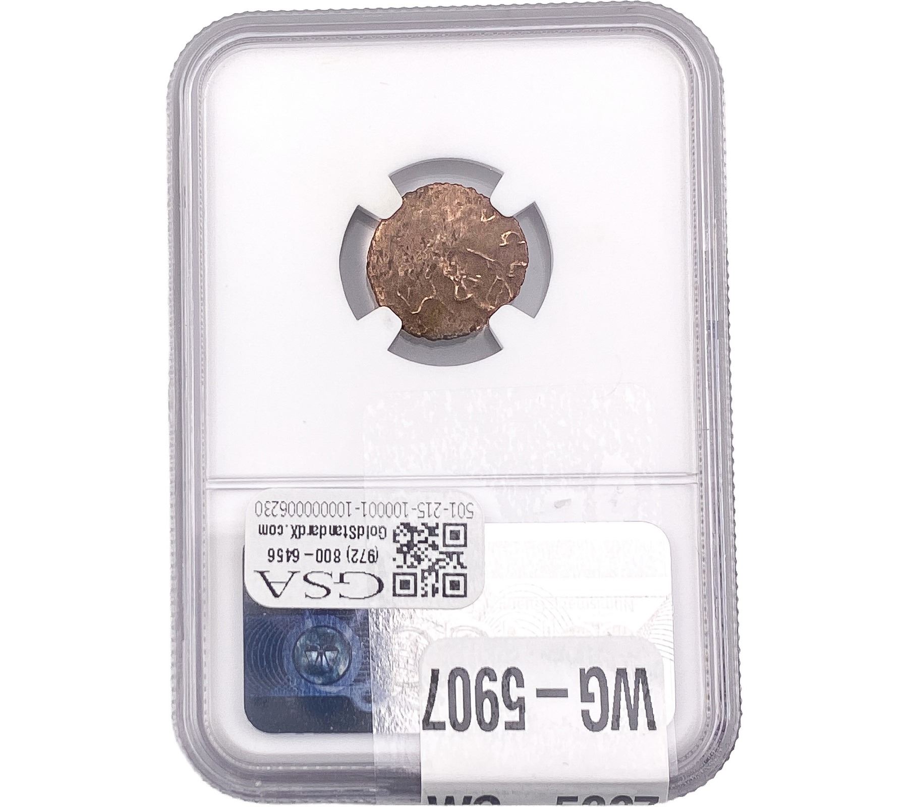 e. Coins sold referencing a third-party grading service are sold “AS IS” without any express or implied warranty, except for a guarantee by GSA that they are genuine. Removal or alteration of the holder, voids all of Bidder’s claims concerning that Product. Certain warranties may be available from the grading services and Bidders are referred to them for further details: Numismatic Guaranty Corporation (NGC), PO Box 4776, Sarasota, FL 34230, www.ngccoin.com/services/writtenguarantee.asp; Professional Coin Grading Services (PCGS), PO Box 9458, Newport Beach, CA 92658, www.pcgs.com/guarantee.html; ANACS, 6555 S. Kenton St., Ste. 303, Englewood, CO 80111; and Independent Coin Grading Co. (ICG), 7901 East Bellview, Ave., Suite 50, Englewood, CO 80111.