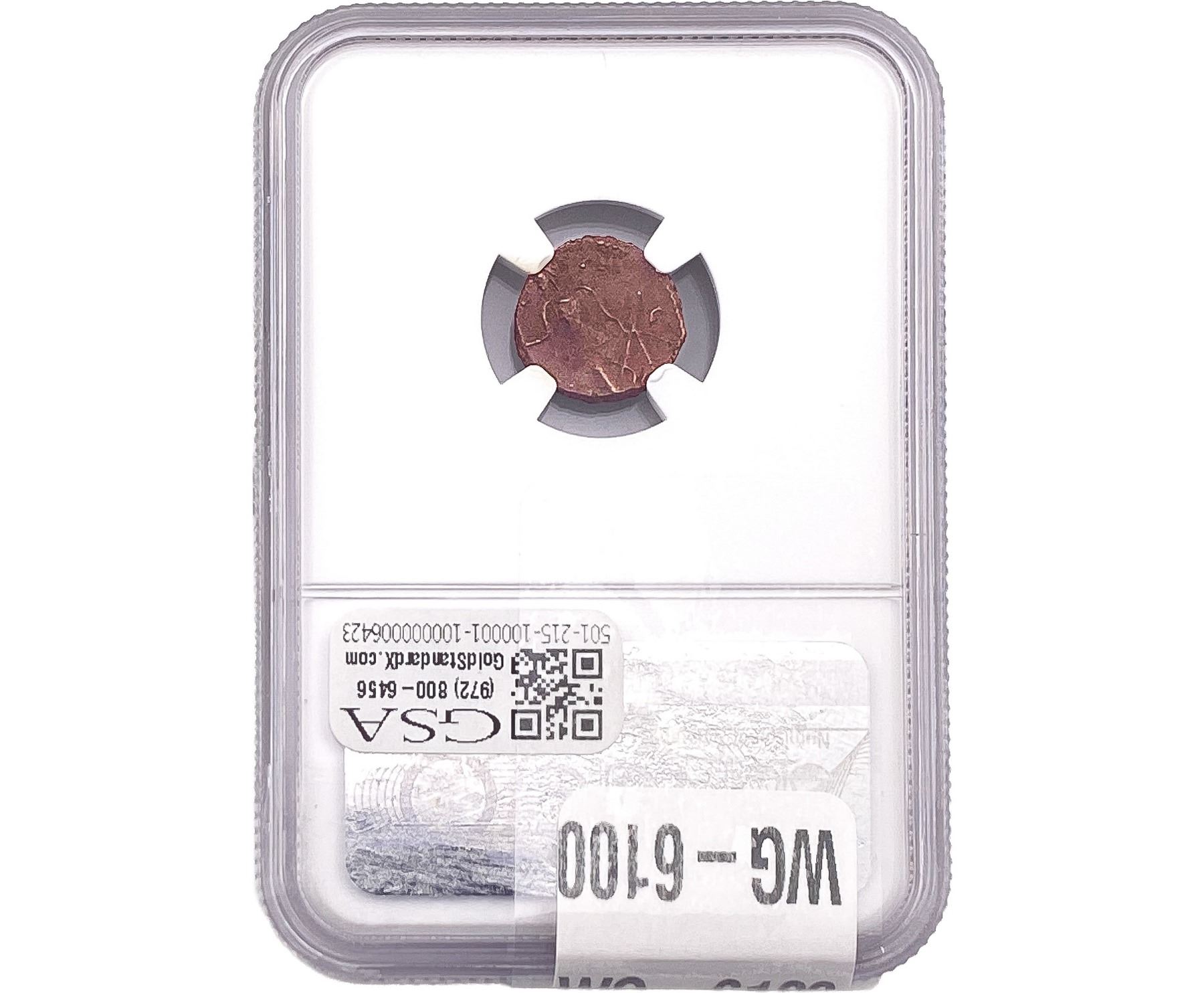 l. All non-certified coins and currency are guaranteed genuine, but are not guaranteed as to grade, since grading is a matter of opinion, an art and not a science, and therefore the description rendered by GSA or any third-party grading service may not agree with the opinion of others (including trained experts), and the same expert may not grade the same item with the same grade at two different times. GSA may, but is not obligated to, express an opinion as to non-certified numismatic items, in GSA’s opinion, or by its employees’ experience and the current interpretation of the American Numismatic Association’s standards as of the date the catalog was prepared. There is no guarantee or warranty expressed or implied that the grading opinions utilized by GSA, if any, will meet the standards of any grading service at any time in the future.