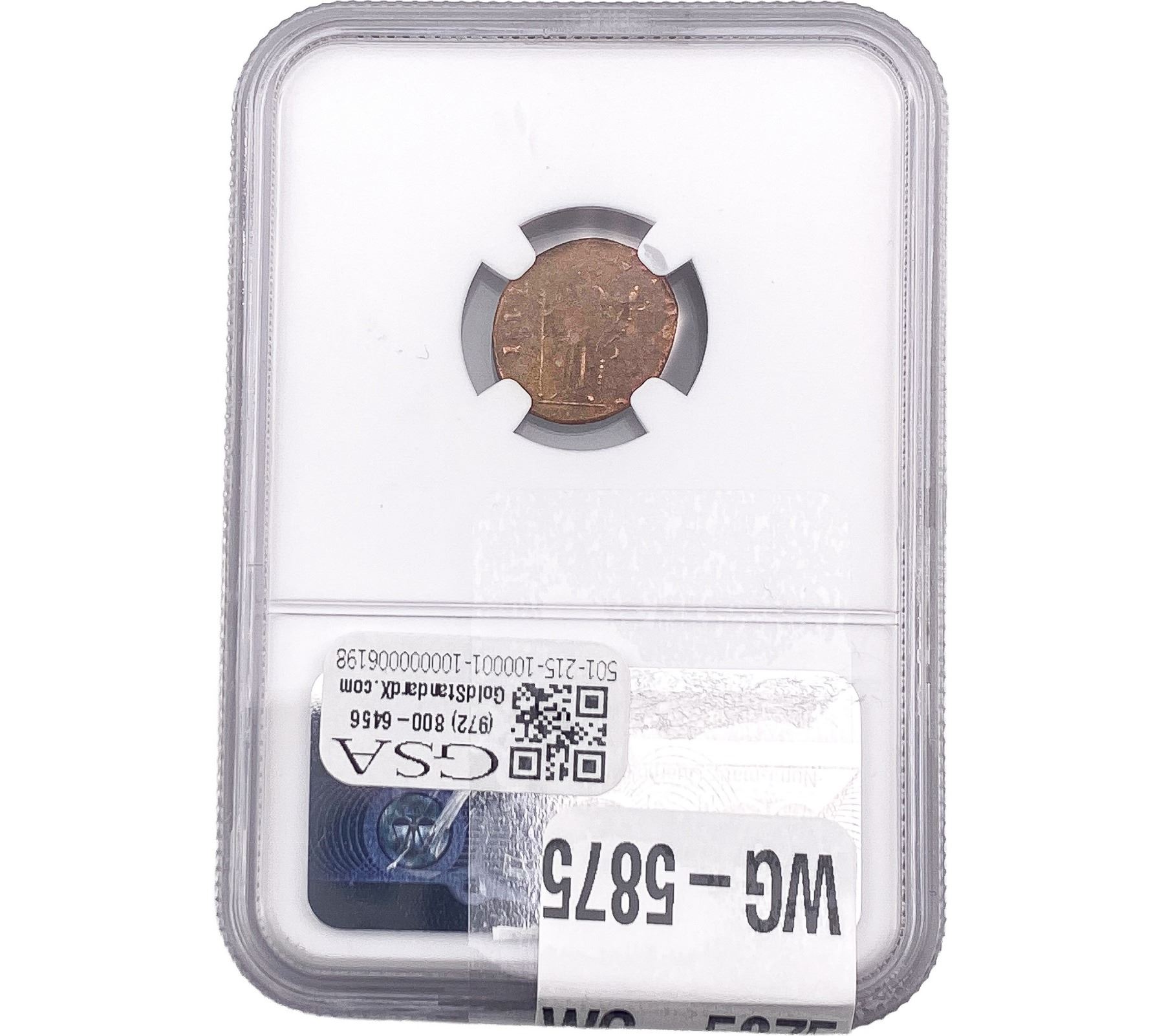 e. Coins sold referencing a third-party grading service are sold “AS IS” without any express or implied warranty, except for a guarantee by GSA that they are genuine. Removal or alteration of the holder, voids all of Bidder’s claims concerning that Product. Certain warranties may be available from the grading services and Bidders are referred to them for further details: Numismatic Guaranty Corporation (NGC), PO Box 4776, Sarasota, FL 34230, www.ngccoin.com/services/writtenguarantee.asp; Professional Coin Grading Services (PCGS), PO Box 9458, Newport Beach, CA 92658, www.pcgs.com/guarantee.html; ANACS, 6555 S. Kenton St., Ste. 303, Englewood, CO 80111; and Independent Coin Grading Co. (ICG), 7901 East Bellview, Ave., Suite 50, Englewood, CO 80111.