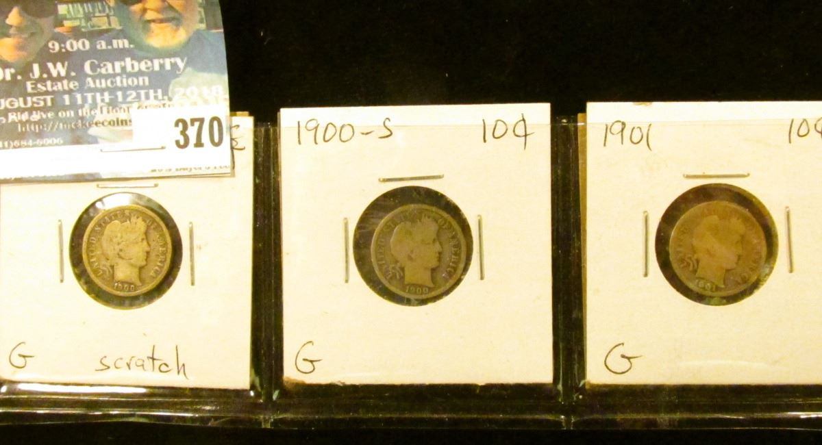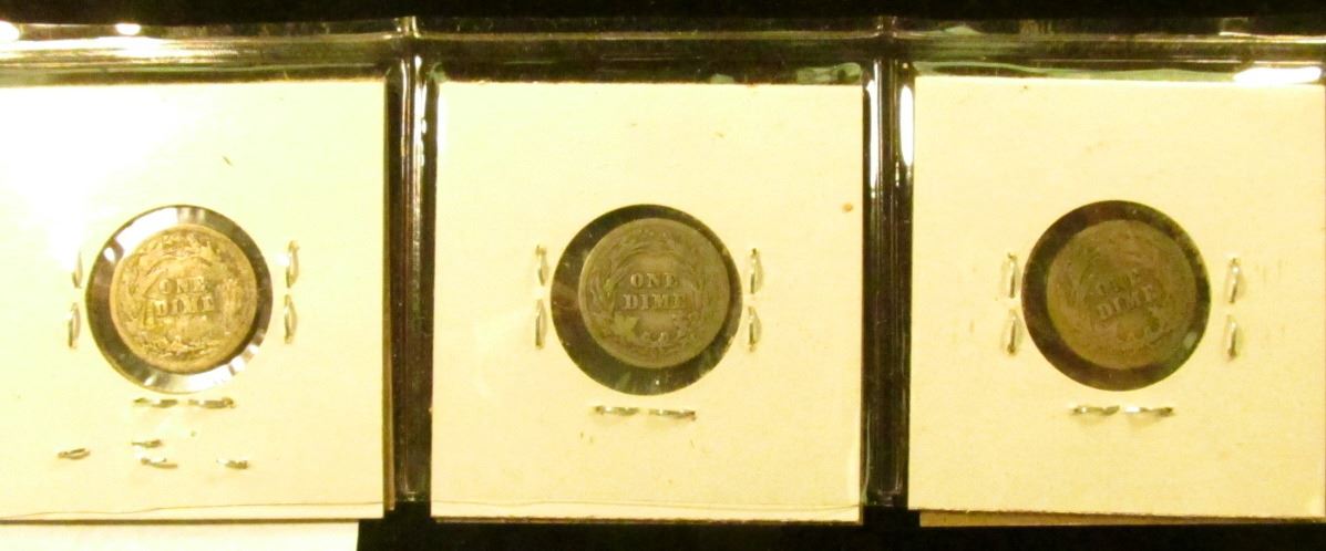 Barber Dime lot: 1899 P, 1899 O G, & 1899 S G/AG.