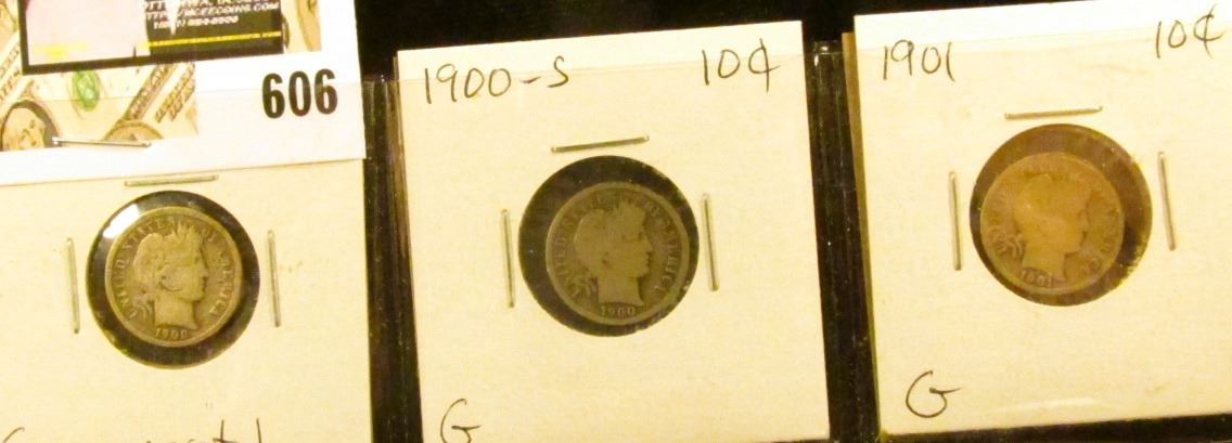 Barber Dime lot: 1900 P G scratch, 1900 S G, 1901 P Good.