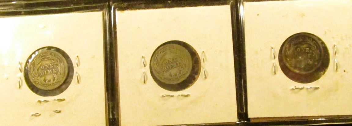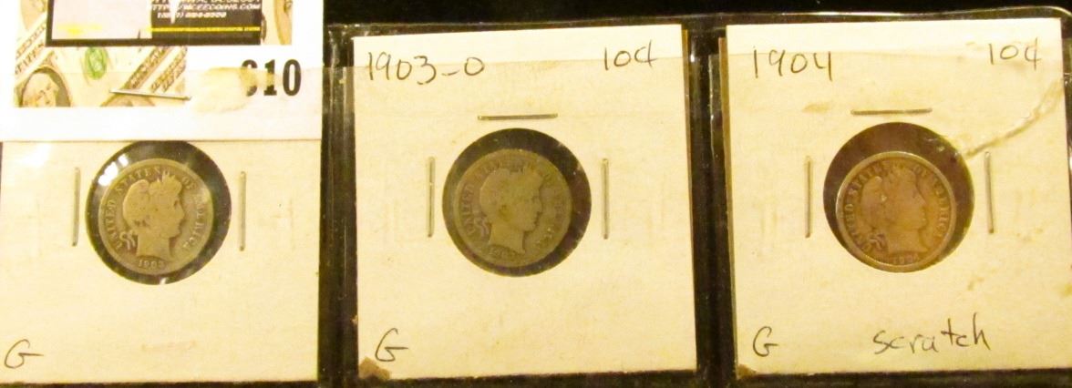 Barber Dime lot: 1903 P G, 1903 O Good, & 1904 O G Scratch.