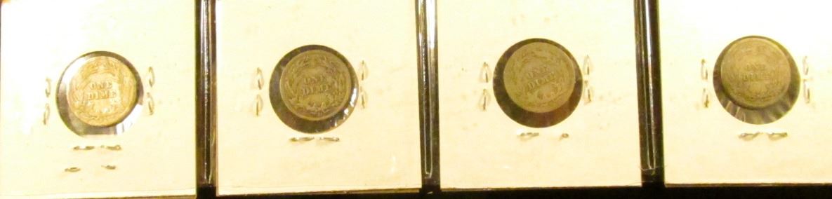 Barber Dime lot: 1910 S G, 1911 D Fine, 1911 S Good, & 1912 P VF scratch.