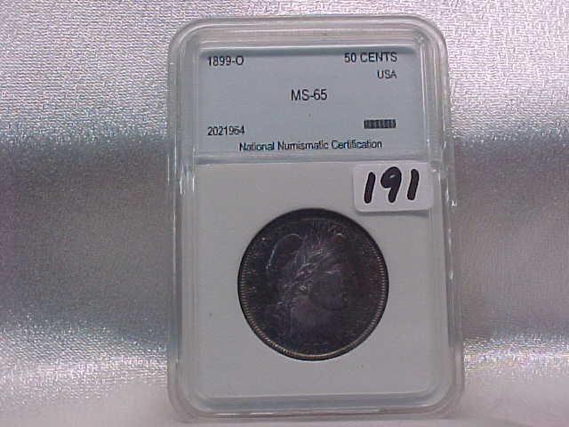 BARBER HALF 1899-O NNC MS65 (weak strike, pretty toning)