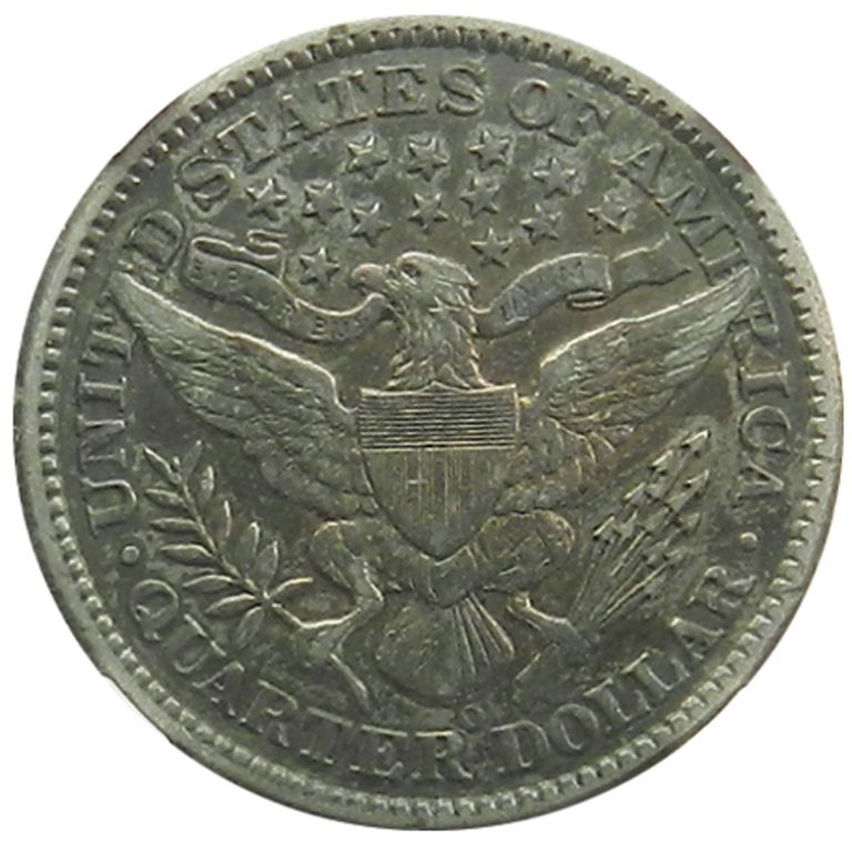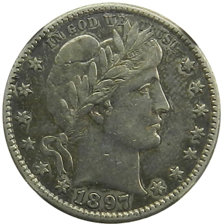 Barber Quarter, 1897-O. Better date. NGC XF45, pretty steel to gunmetal blue toning at borders.