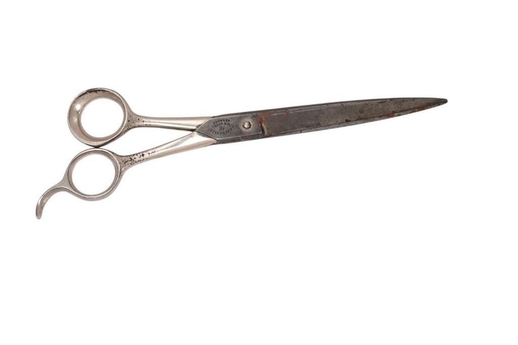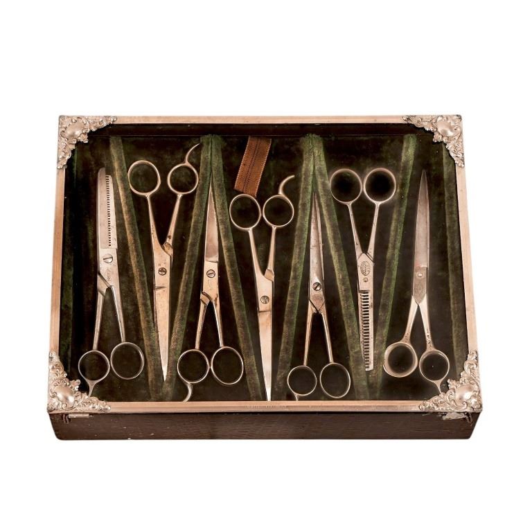 Barber's Scissors Display Case With Barber's Scissors. Over 120 years old. 4 1/4" x 9" x 12".4 1/4" x 9" x 12".