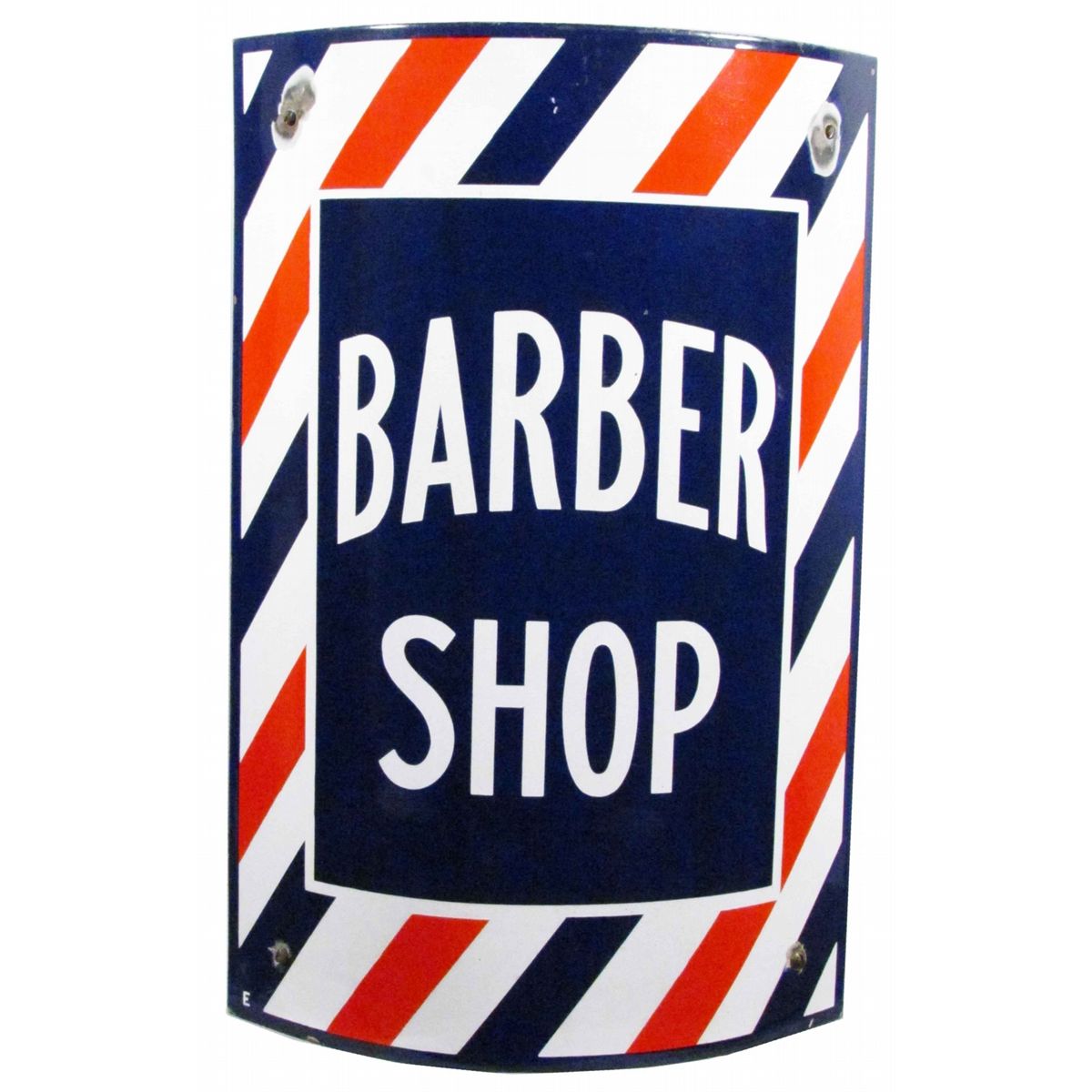 Barber Shop Porcelain Curved Corner Sign. A couple of chips otherwise good condition. 15 1/2 X 24 inches.