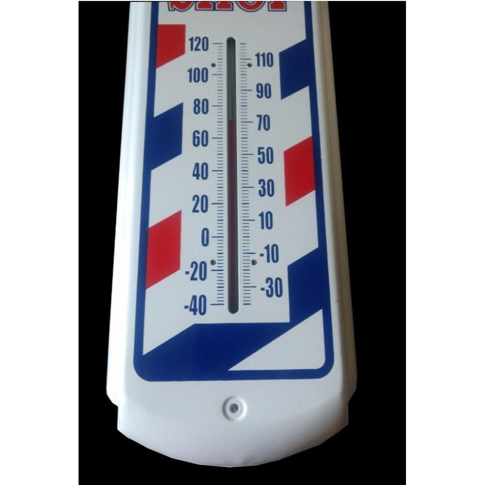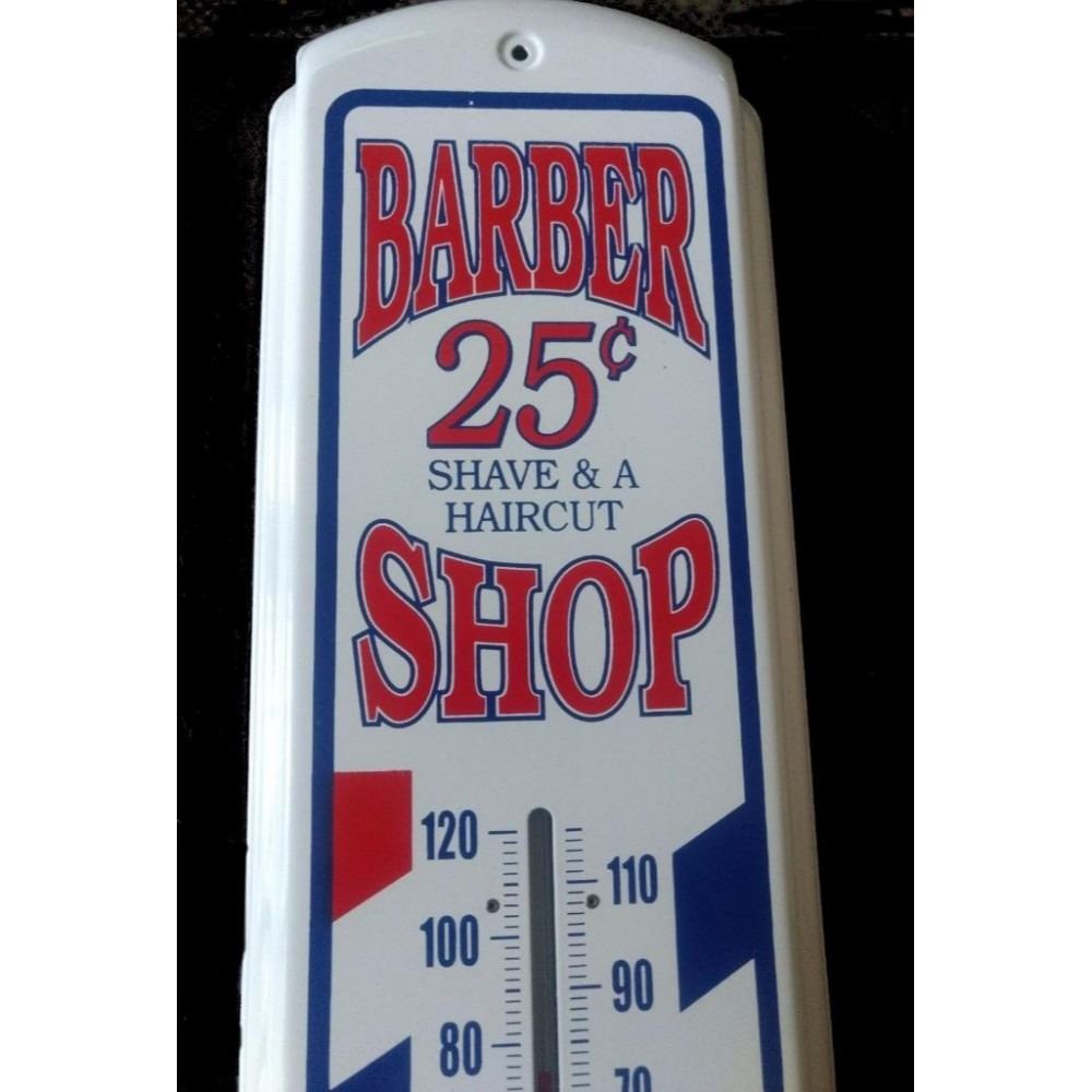 Barber Shop reproduction thermometer. Measures 17x5. Made of metal. Like new condition.
