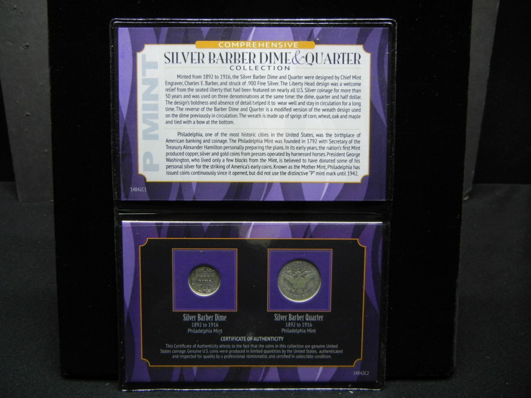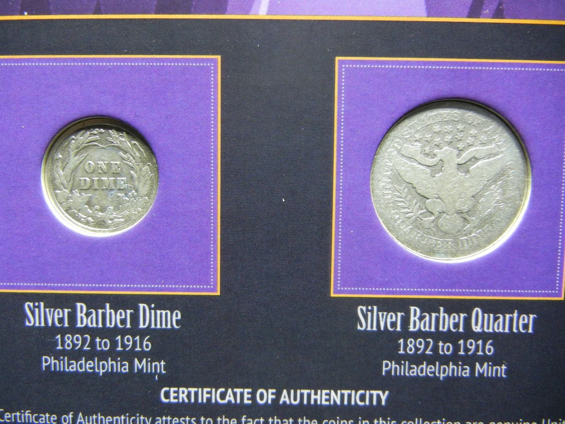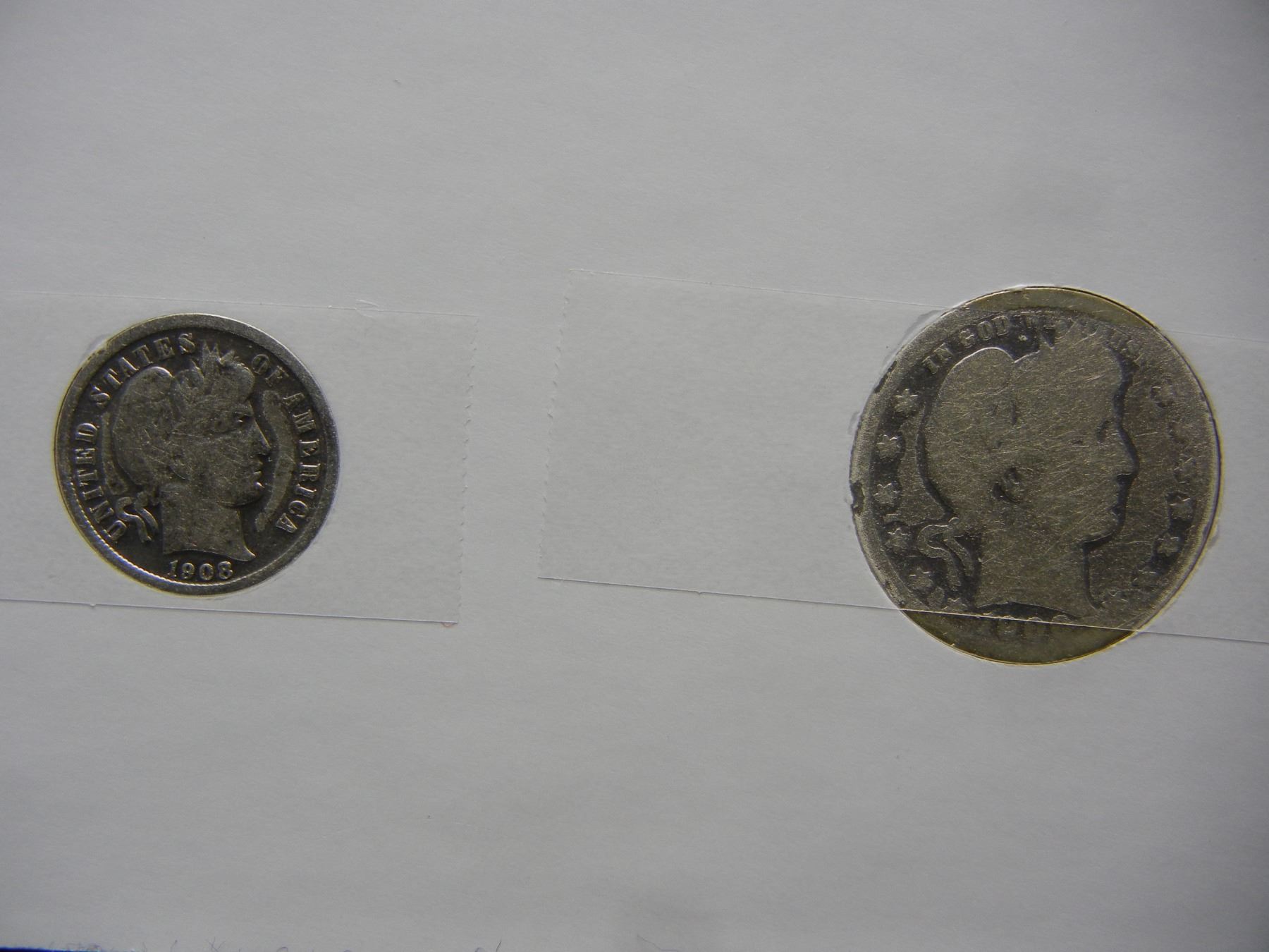 Barber coin collection. History facts1908 Barber Quarter, and 1906 Barber Half Dollar