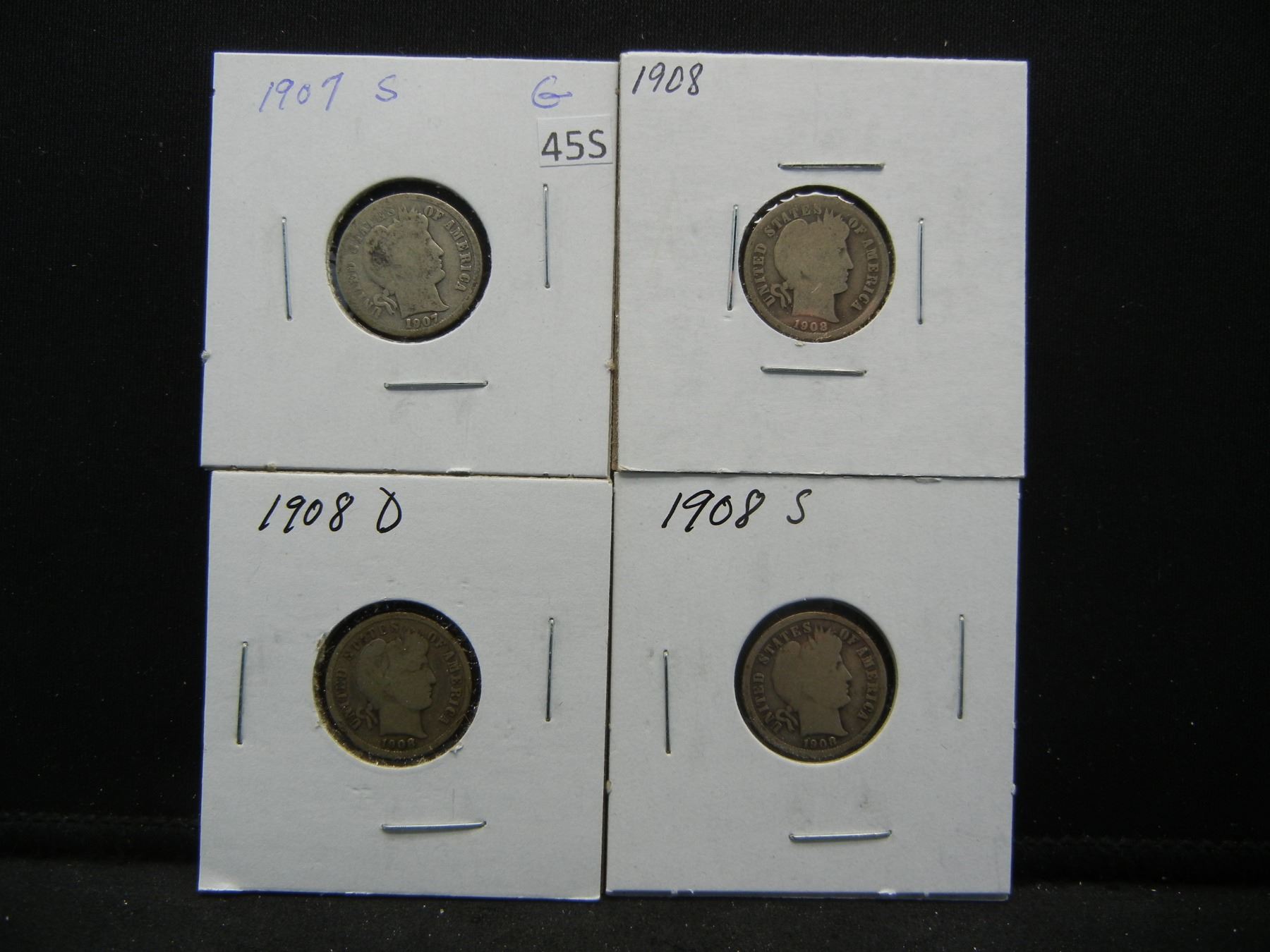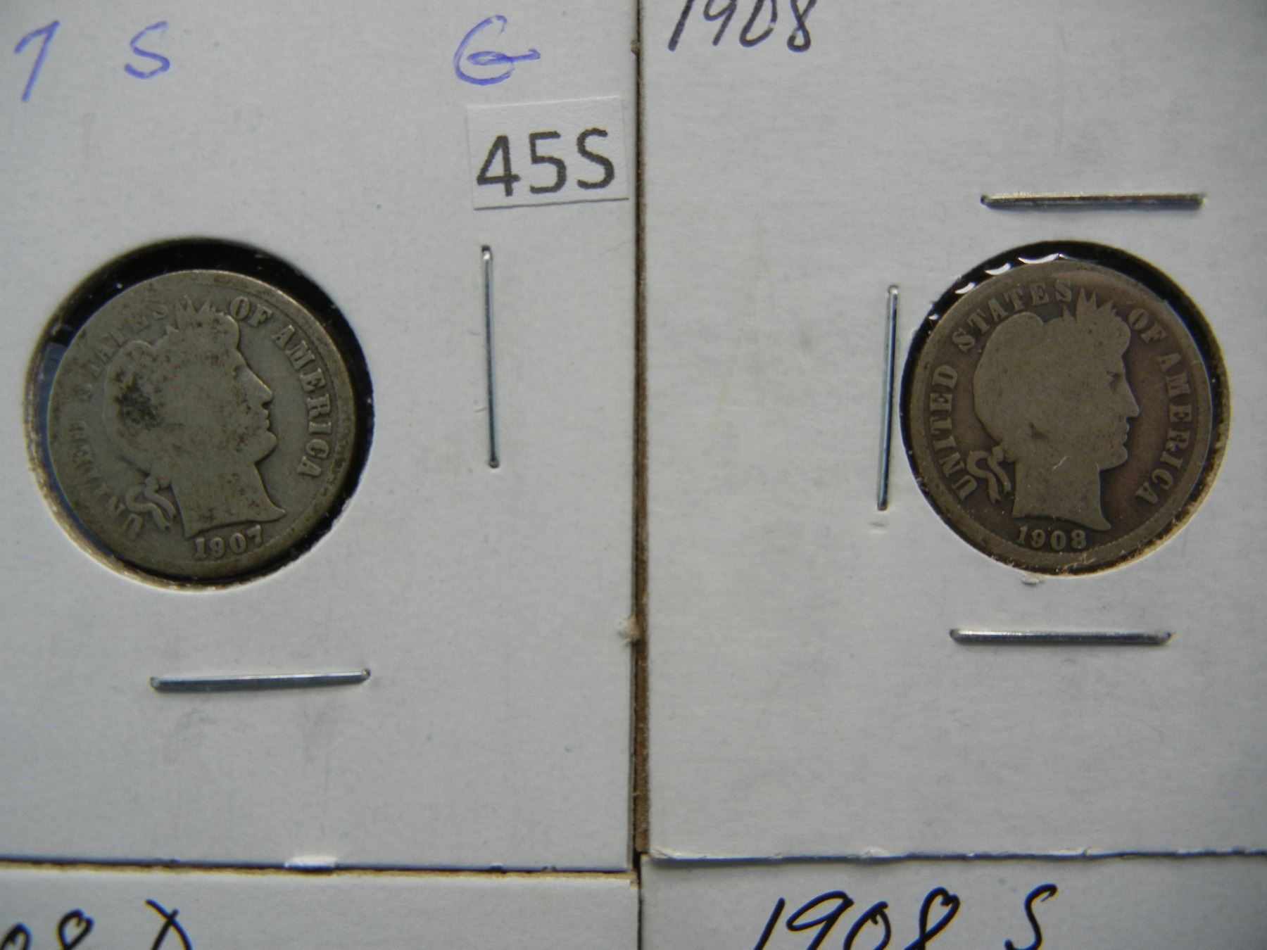 Barber dimes 1907s, 1908, 1908d, 1908s