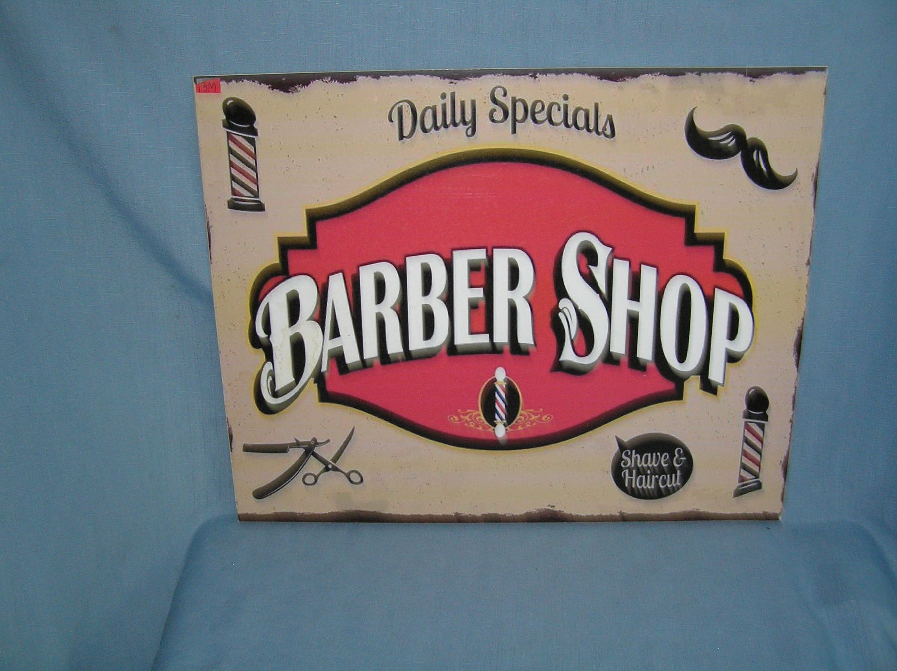 Barber shop retro style advertising sign large 16 inches by 20 inches printed on PVC hardboard est. value $75.00-$80.00