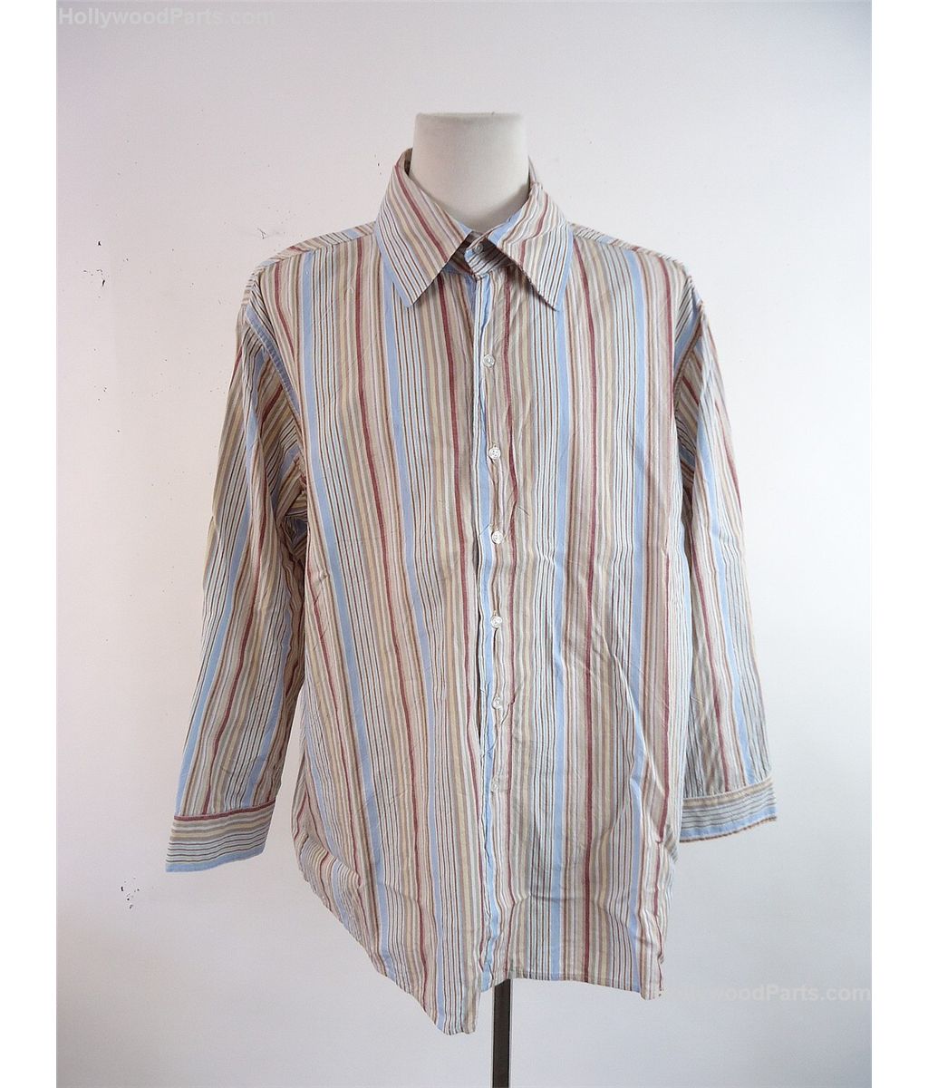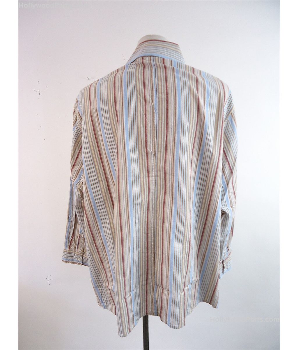 Barbershop Eddie (Cedric Kyle "The Entertainer") Hero Striped Button-Up Shirt. Maroon, brown and blue stripe large button-up shirt. MGM 168174 Box 844