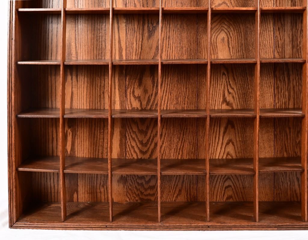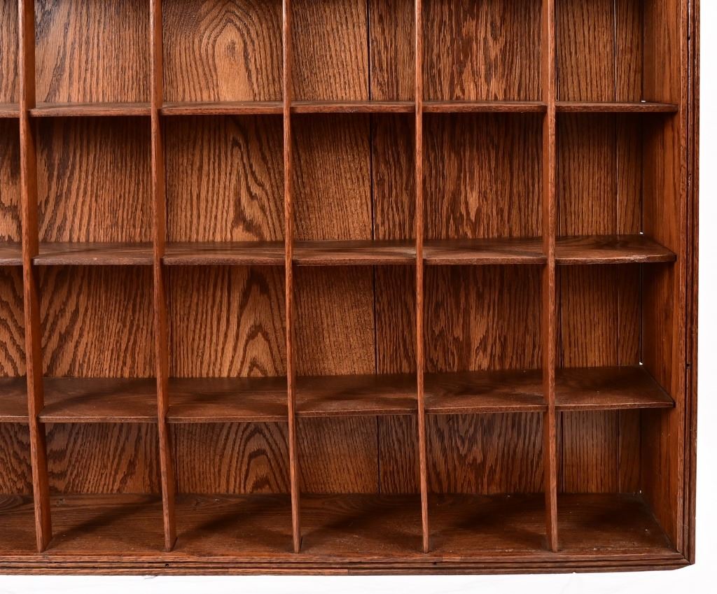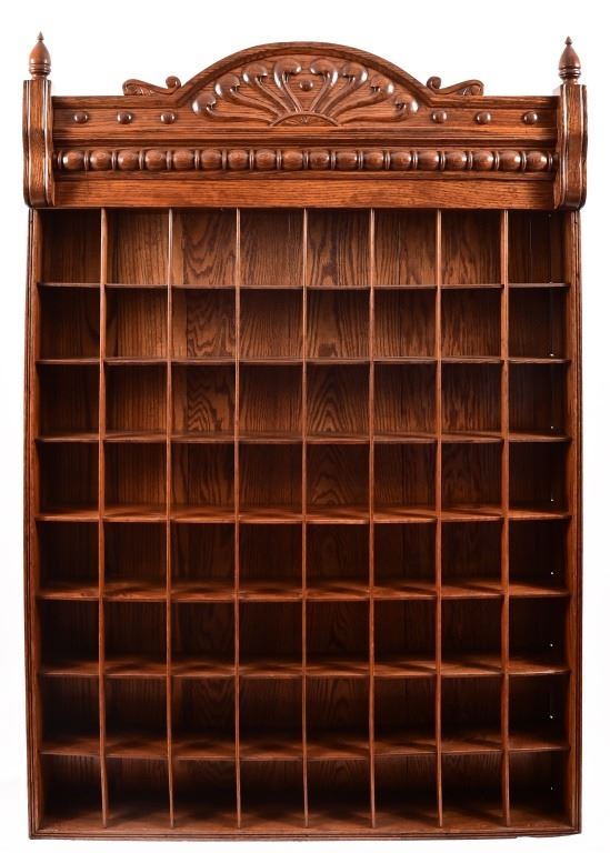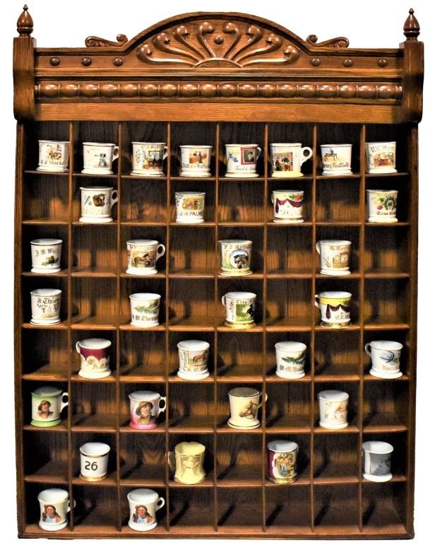 Barbershop Oak Occupational Shaving Mug Rack. 100 years old with 64 compartments. Mugs not included. 47 3/4 X 63 1/2 inches.