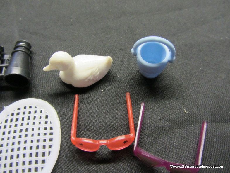 binoculars, a duck and sand pail for the beach. Great for a day in the sun.