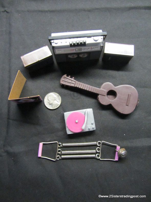 Collection includes a wind up boom box (works) with 2 specters, turn table and guitar & arm