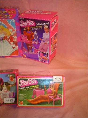 "Barbie" Collection: 1)Jigsaw Puzzle by Whitman #4678. 1980. 2)Dream Store by Mattel #4020. 1982. 3)Tracy & Todd Wedding by Mattel #4936. 1983. 4)Dream Pool by Mattel #1480. 1980. All in Orig. Boxes. Have been opened & Reclosed