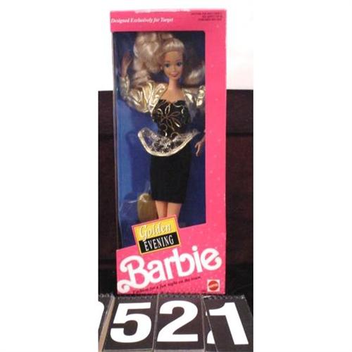 Mattel Barbie doll, "Golden Evening" made in 1991. Doll is in perfect condition as well as box. Box measures 13" x 5" x 2" and weighs 8 ounces. [81]