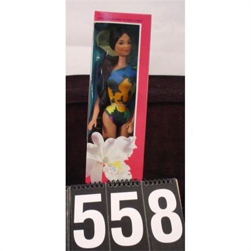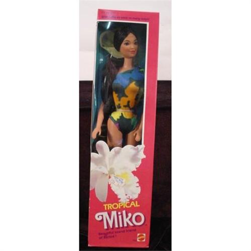 From Mattel, Barbie doll Tropical Miko. Made in 1985. Box and doll are in mint condition. Box measures 12" x 3" x 2" and weighs 8 ounces. [81]