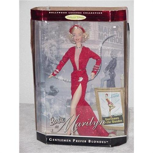 Hollywood Legends Collection "Gentlemen prefer blondes", 12" tall barbie dressed as Marilyn Monroe as she appeared in the 1953 motion picture "Gentlemen Prefer Blondes" an adult collectible, features the dazzling red gown, with its daring, dropping neckline and thigh -high slit. Condition is good, the doll has not been removed form the package but the top of the box is missing.