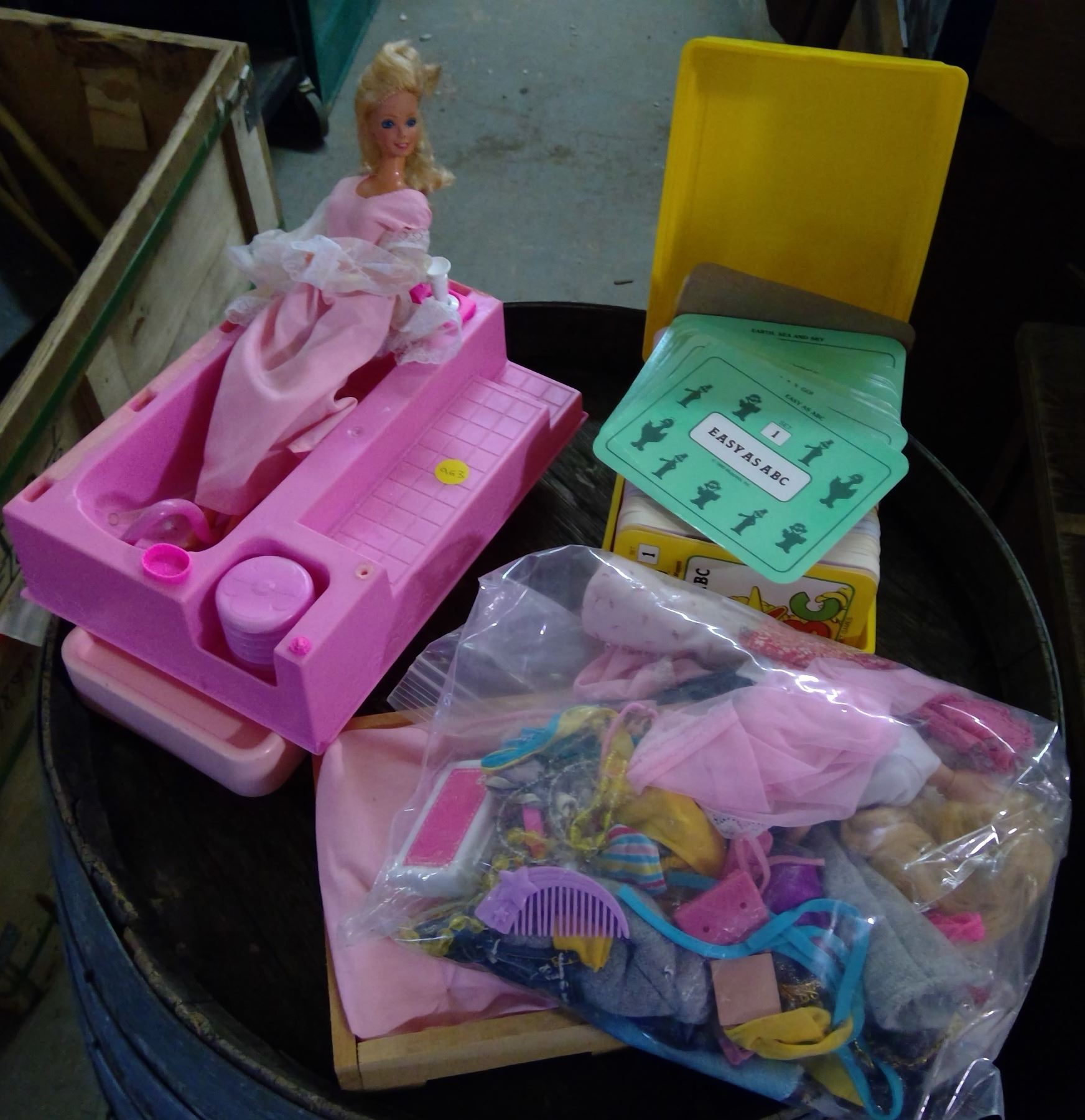 Barbie w/ Assorted Clothes + Bath, Sesame Street Learning Center Cards