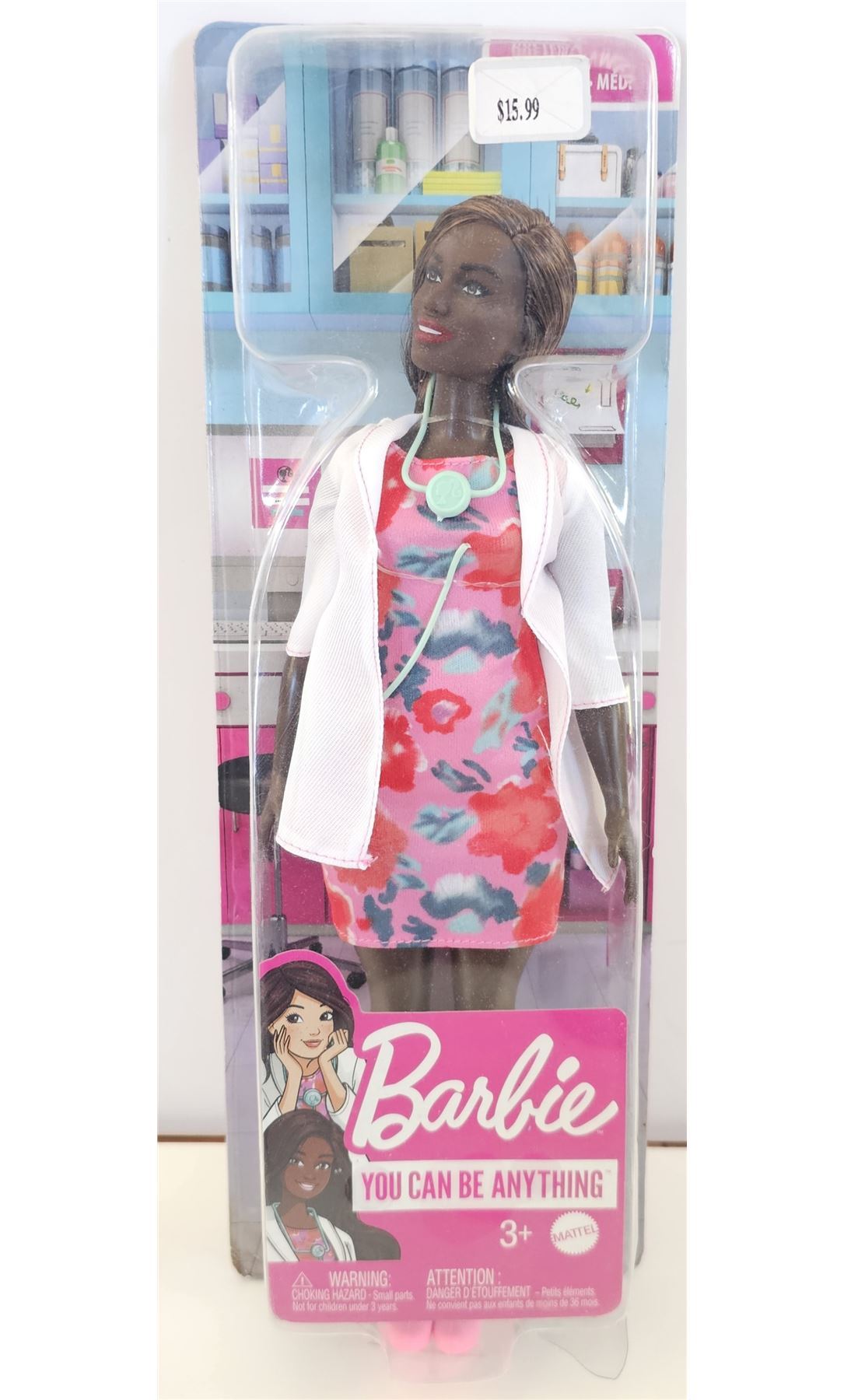 Doll with medical professional attire, includes stethoscope accessory, new. Ideal for ages 3+, inspiring role-play and imagination.