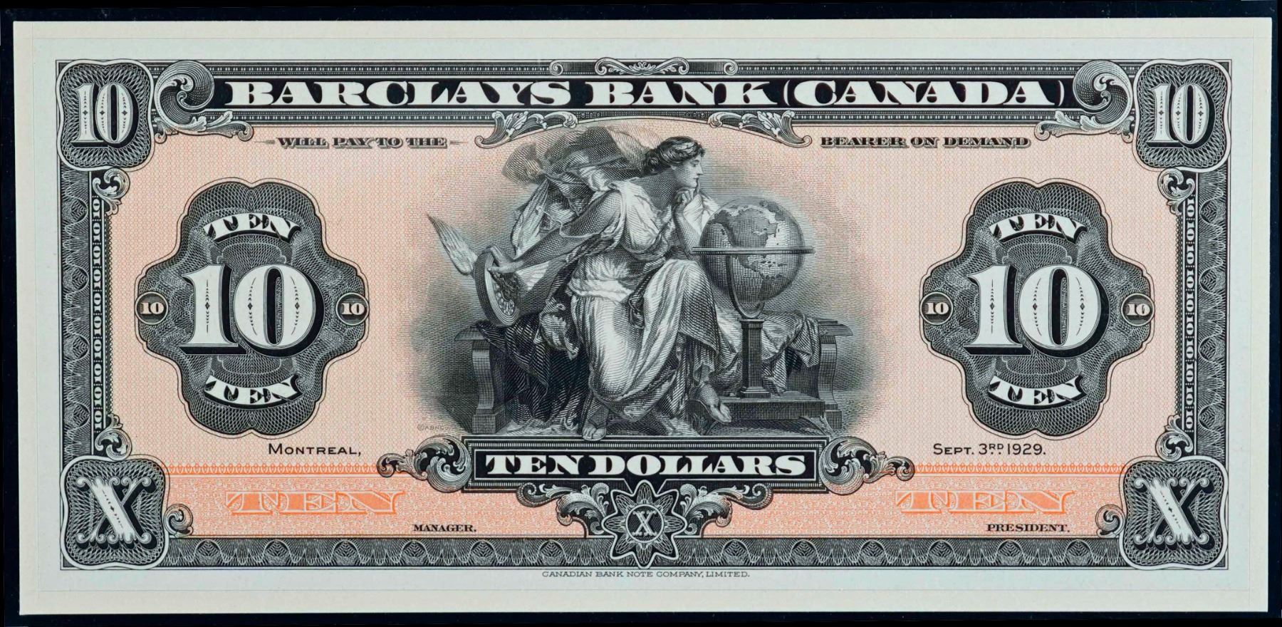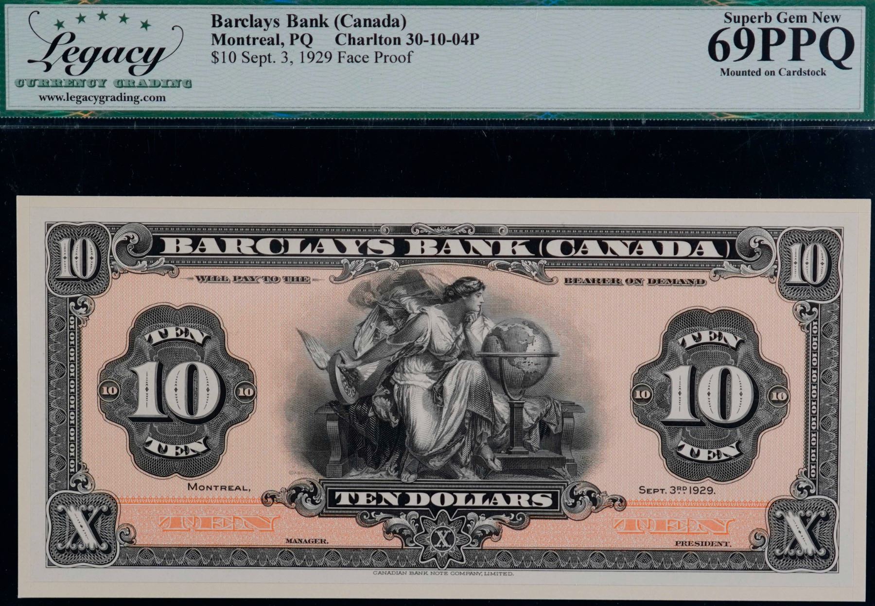 Barclays Bank of Canada; 1929 $10 CH-30-10-04P, Legacy Currency Grading Superb Gem Uncirculated-69PPQ.
