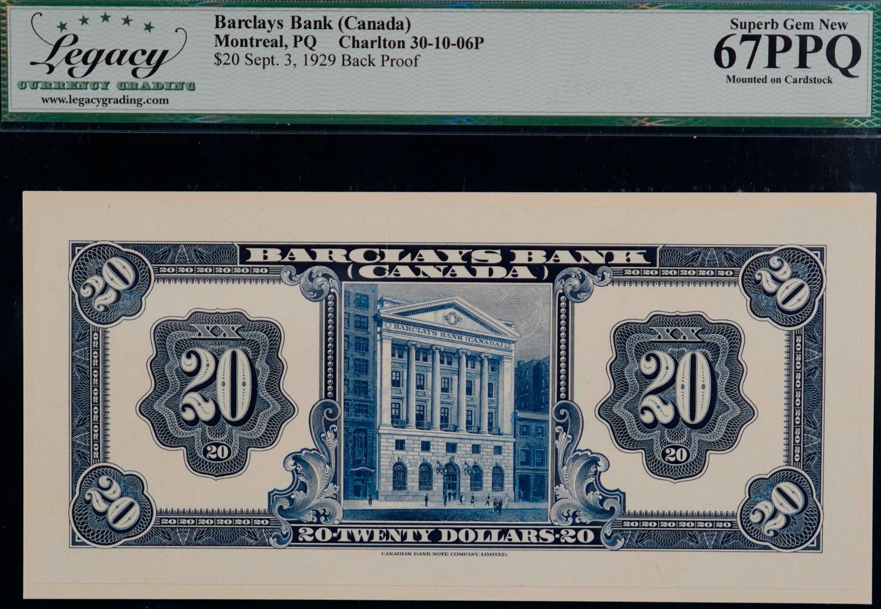 Barclays Bank of Canada; 1929 $20 CH-30-10-06BP, Legacy Currency Grading Superb Gem Uncirculated-67PPQ.