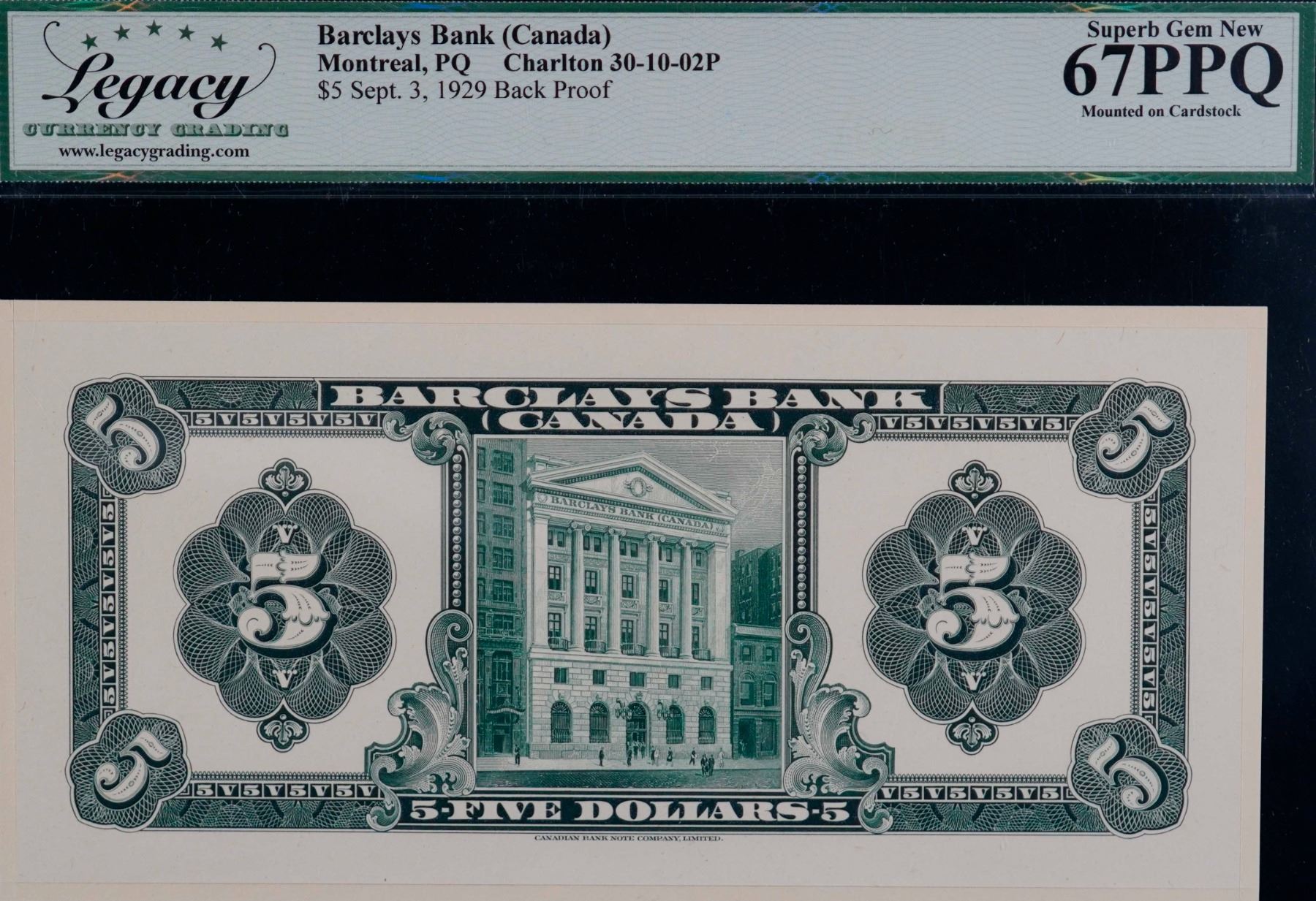 Barclays Bank of Canada; 1929 $5 CH-30-10-02BP, Legacy Currency Grading Superb Gem Uncirculated-67PPQ.
