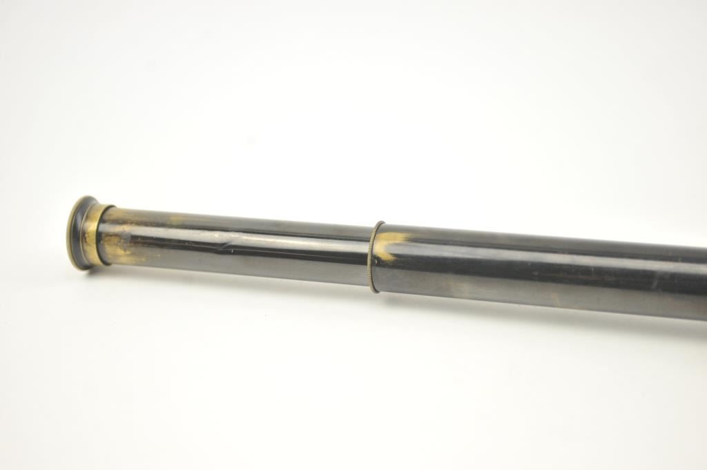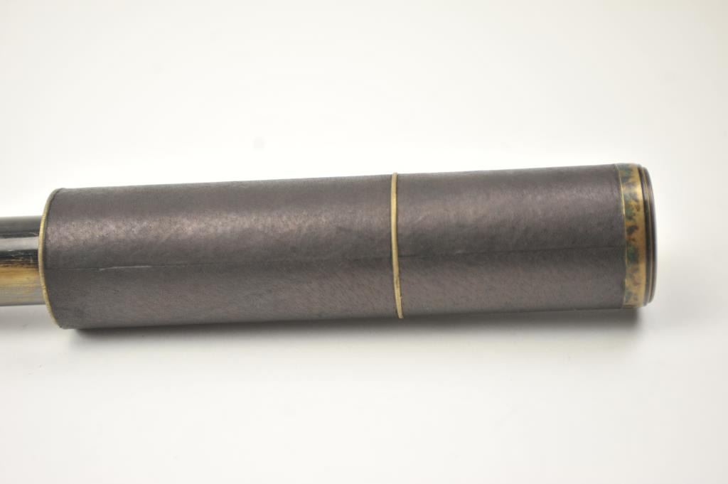 Bardou & Son Paris marked 4-draw telescope. The telescope is in very good overall condition marked, “Bardou & Son Paris Rifle Range Telescope Power 33 times” in front of the eye piece. The all brass scope retainssignificant black finish with a period brown leather wrap around the bell. An interesting piece dating to the late 19th to early 20th century. Est.: $250-500.