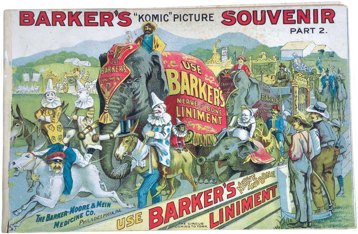 Barkers's Nerve and Bone Liniment Comic Picture Souviner Book, part 2. The Barker-Moore & Mein Medicine Company, Philadelphia, PA. Excellent condition. 10 X 6 inches. Start Price $30