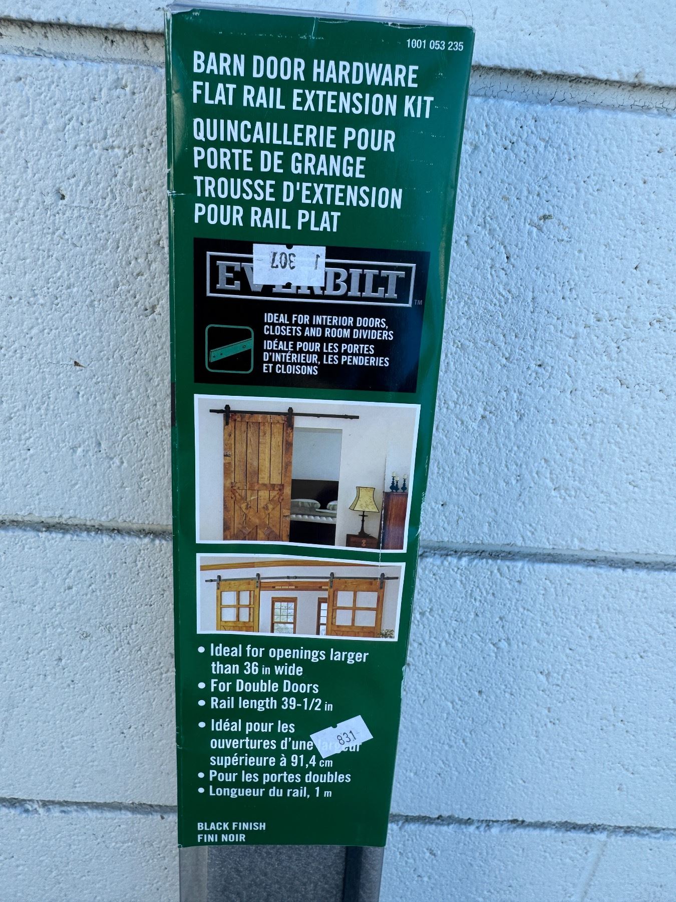 Barn door, hardware, flat rail, extension kit, ideal for openings, larger than 36 inches wide