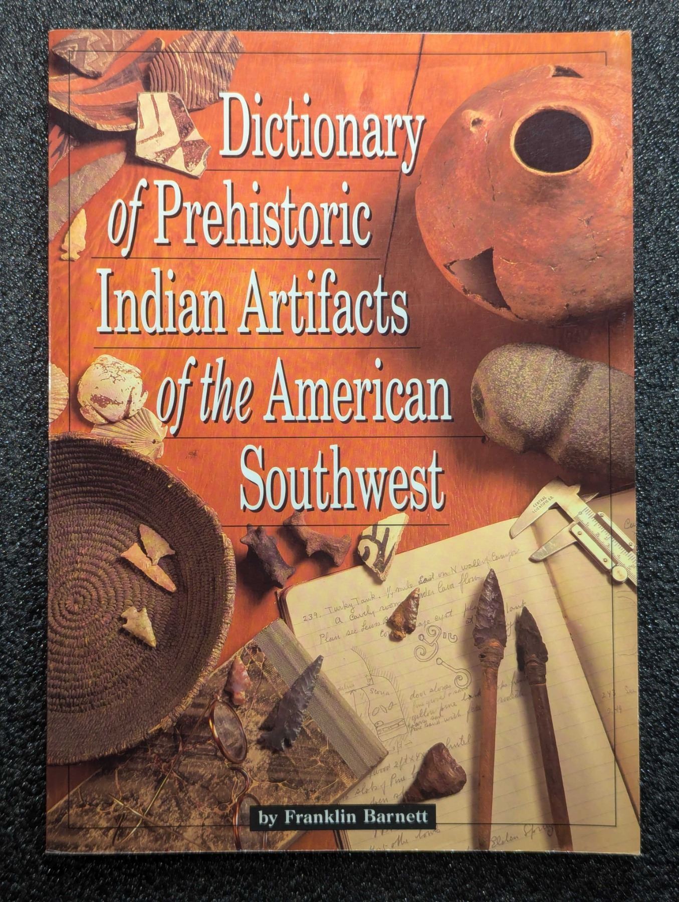 Barnett, Franklin. DICTIONARY OF PREHISTORIC INDIAN ARTIFACTS OF THE AMERICAN SOUTHWEST. Northland Publishing Company, Flagstaff. 1993. 8vo. xviii, 130 pages. original pictorial card covers. Glossary. Bibliography. Maps. B&w photos throughout. English text. The David Baker Library. Fine. Identifies artifacts and implements characteristic to the culture of the Indians of the American Southwest and details their function and use. Lot weight: 0 lbs 13oz. Subject(s): Native American Artifacts.
