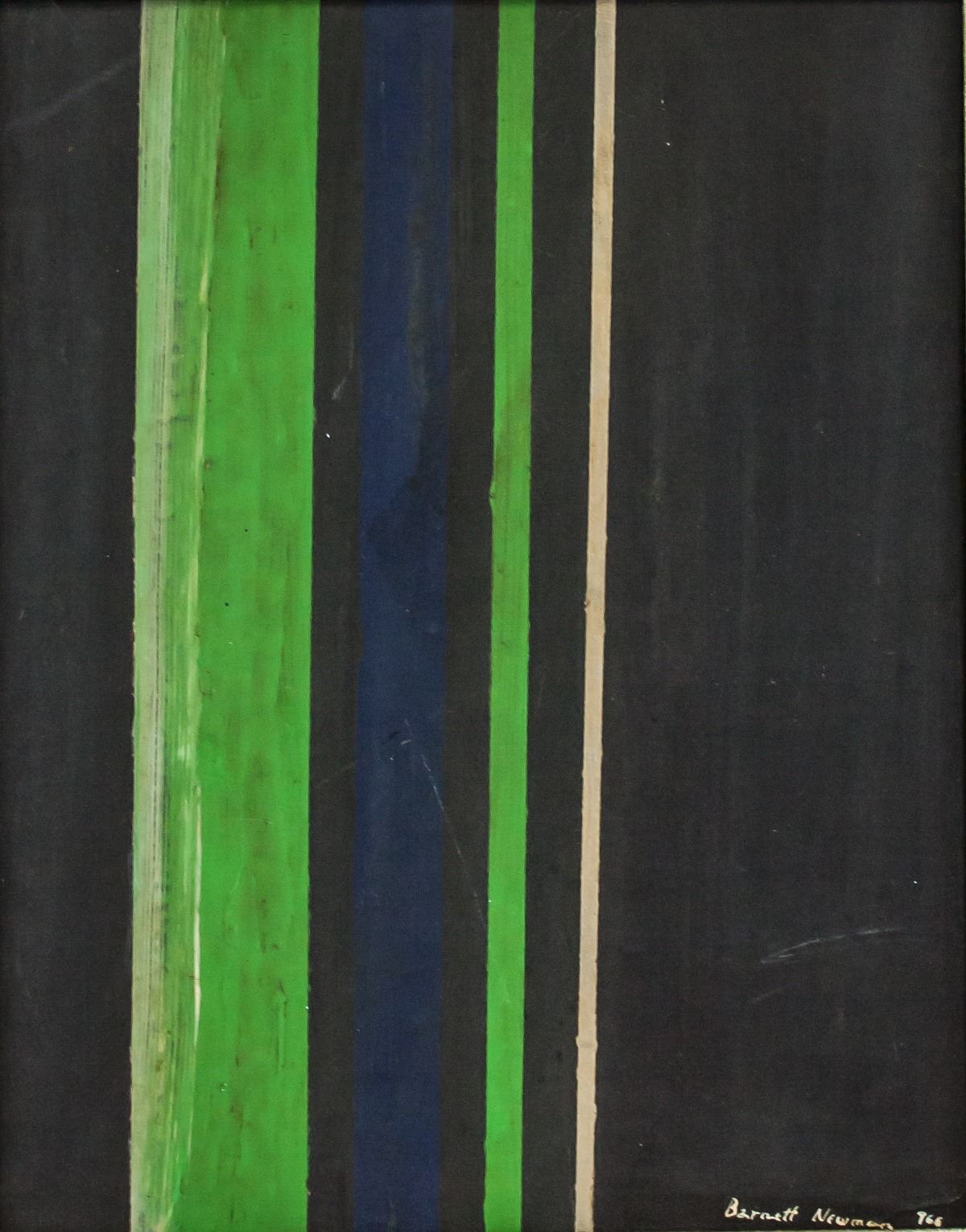Oil on canvas, framed. Featuring an abstract expressionist composition. Signed Barnett Newman on the lower right corner and inscribed 966. Attributed to Barnett Newman (1905-1970, American). 49 x 39 cm (19.3 x 15.3 inches). Framed size: 61 x 51 cm (24 x 20 inches). PROVENANCE: Southern Ontario estate