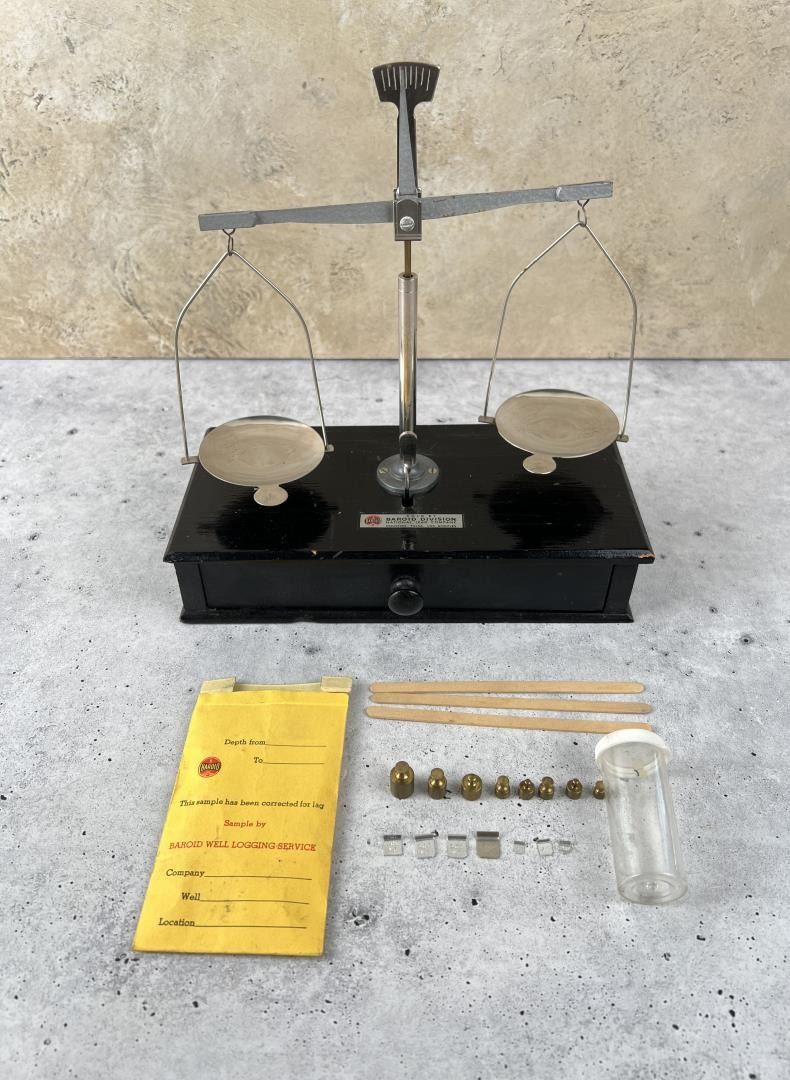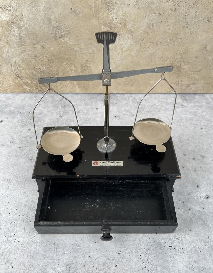 Nice folding scale with weights.