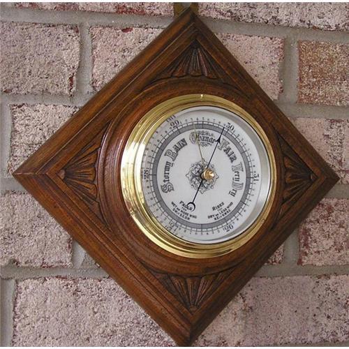 Authentic (not a reproduction) 19th Century Barometer from Scotland. The instrument, with a superb face, is 5 inches in diameter, and is mounted on a beautifully carved walnut plaque which is 9 inches square. The lens has recently been replaced. Shipping is determined after checkout.