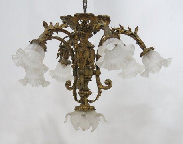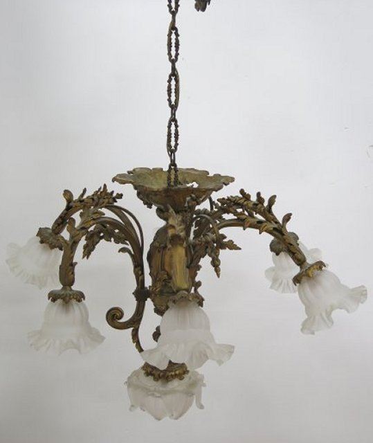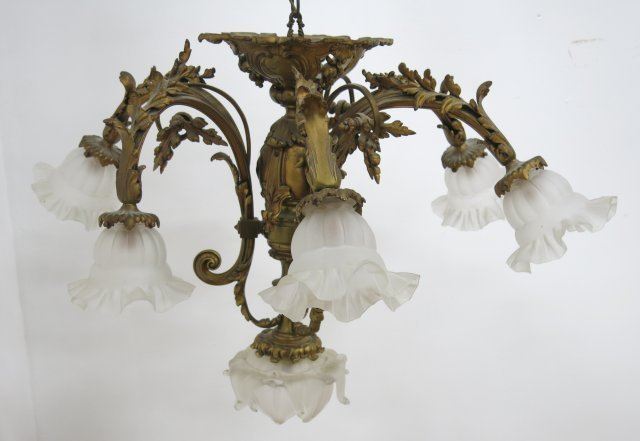 Early to mid 20th century. Approx. 34" H to ceiling mount, 25" D.