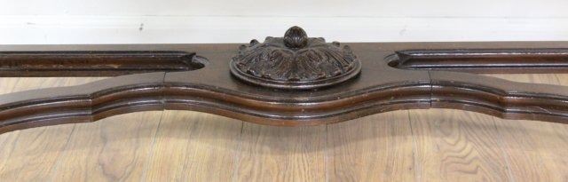 Circa 1920. Inlaid marquetry. With nicely carved base. Approx. 38" H x 46" x 18".