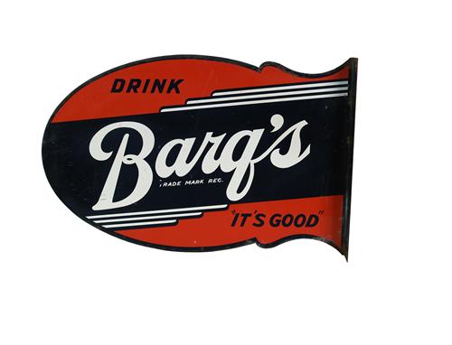 Barq's die cut tin 2-sided flange sign   14 x 22 "  minor rust on edges
