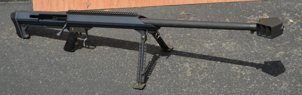 Barrett Model 99 single shot rifle in .416 caliber, mat finish, retractable bipod, #5524 with Pelican hard case. This gun is in like new condition showing little handling; approx. 99%+ original finish, excellent bore, crisp action, sharp markings; one of the ultimate target rifles by a master maker. Est.: $3,000-$5,000.