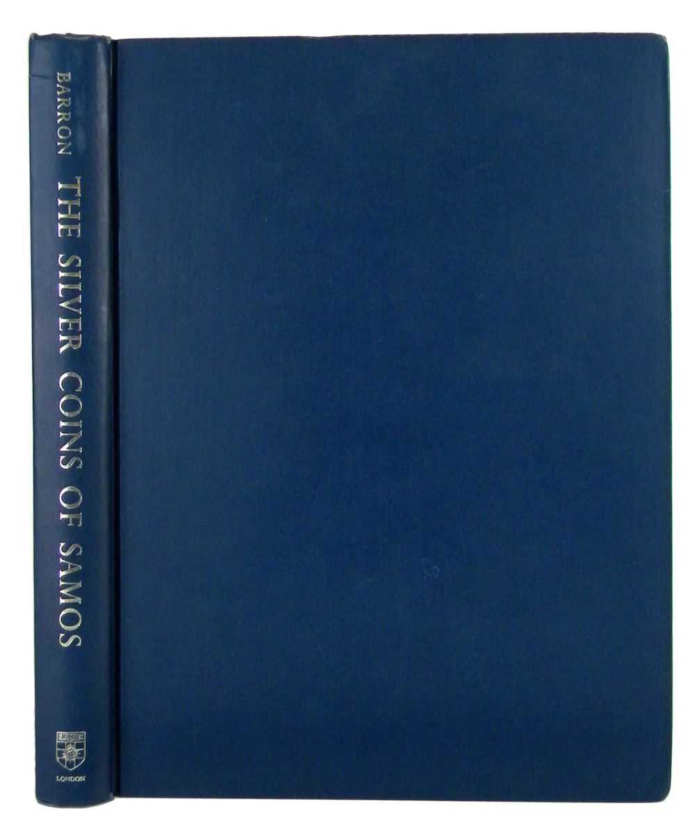 Barron, John Penrose. THE SILVER COINS OF SAMOS. London: Athlone, 1966. Crown 4to, original blue cloth lettered in silver. xii, 242, (2) pages; 32 plates of coins. Fine. A comprehensive study. Clain-Stefanelli 2739. Daehn 4843. Grierson 63.