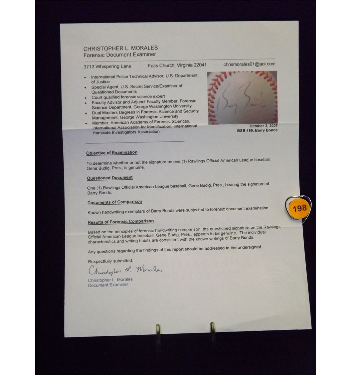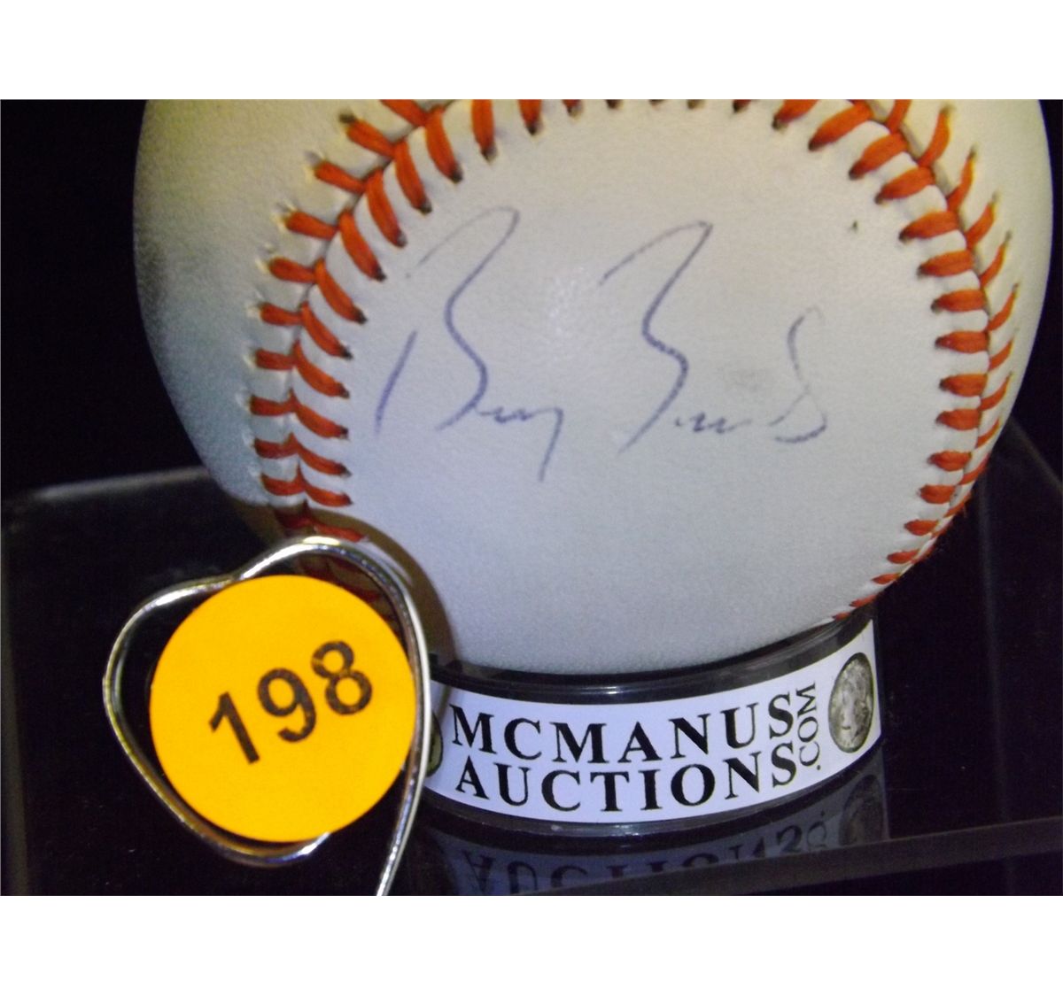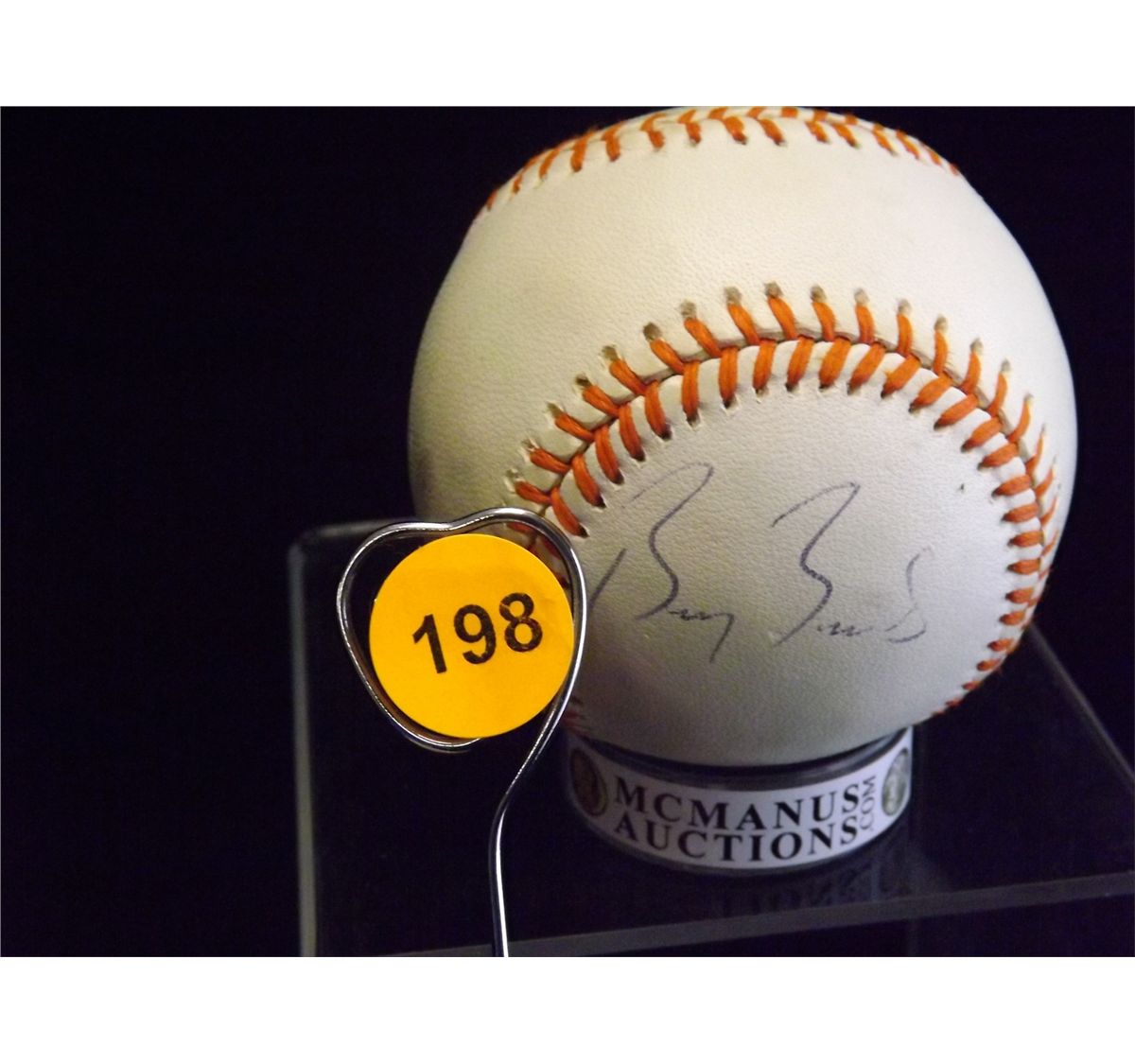 Barry Bonds Autographed Baseball. Rawlings Official ALB. Appraised or estimated retail value $800. COA by Christopher Morales. All Sales Final. Please see terms and conditions of auction.