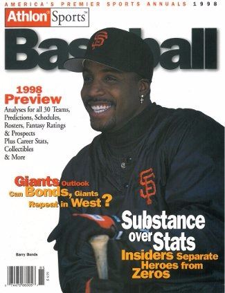 This is an Athlon Sports 1998 MLB Baseball Magazine with San Francisco Giants Slugger Barry Bonds on the cover. This Preview has team analysis, predictions, lineups and more for the 1998 Season