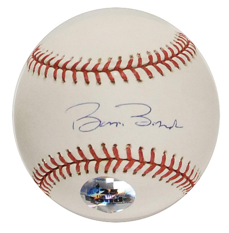 Official Rawlings Major League baseball signed in blue ballpoint on the sweet spot “Barry Bonds.” In fine condition with a Barry Bonds Authenticated label affixed to the sphere.